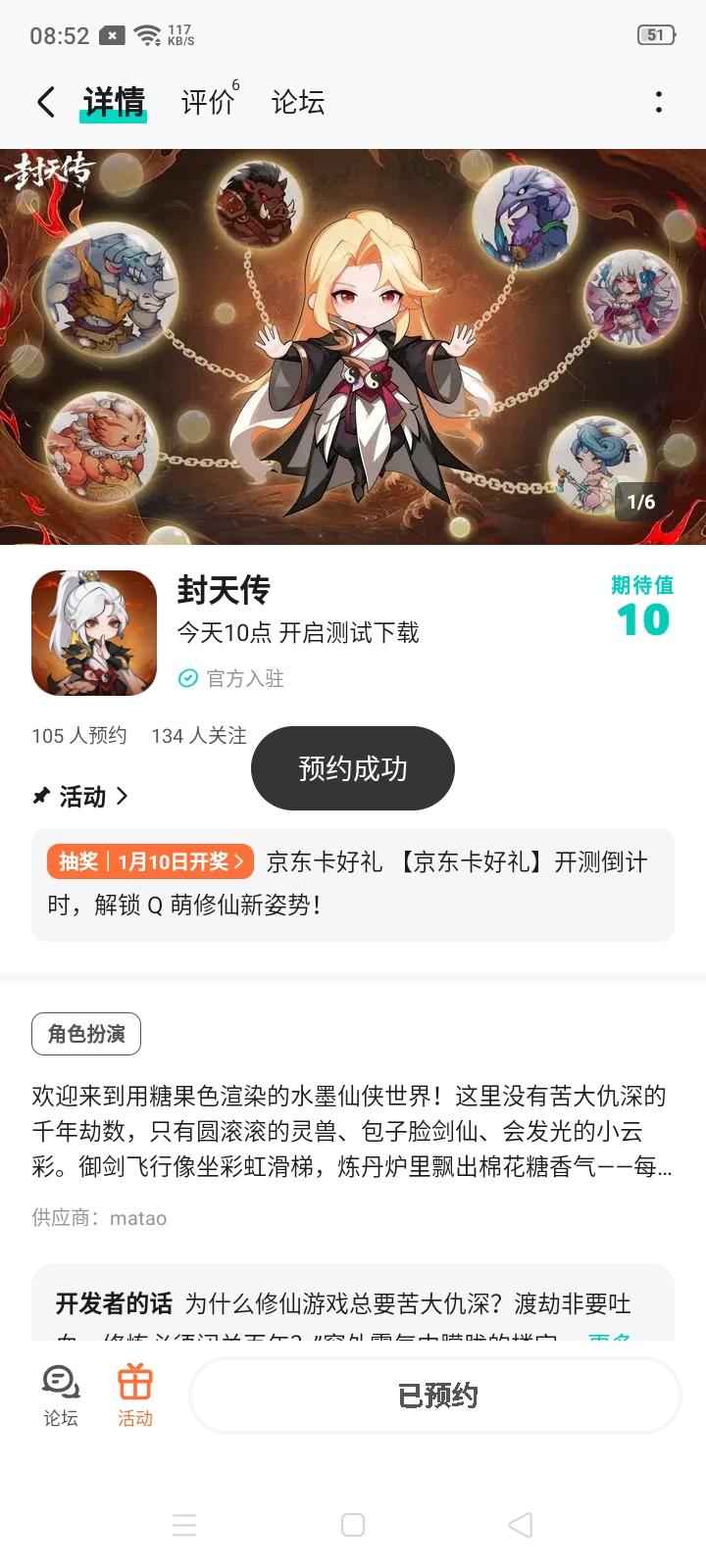 🌟 仙门大开,就等你赴约 🌟不用渡劫,不用内卷,只要甜甜蜜蜜修仙,开开心心收集~快拉上闺蜜、兄弟一起,在糖果水墨世界里,经营属于你的萌系仙途吧!⏰开测时间:2025年12月24日 10:00🎁 开测专属福利:【京东卡抽奖活动】▶ 参与方式1.点击关注发帖账号并预约《封天传》且发新帖晒截图2.在本帖下方评论区分享发帖链接即可【奖品发放】到达开奖时间后,由taptap系统随机抽取符