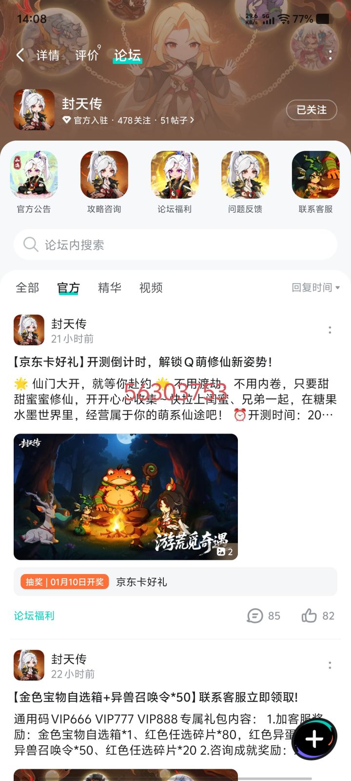 🌟 仙门大开,就等你赴约 🌟不用渡劫,不用内卷,只要甜甜蜜蜜修仙,开开心心收集~快拉上闺蜜、兄弟一起,在糖果水墨世界里,经营属于你的萌系仙途吧!⏰开测时间:2025年12月24日 10:00🎁 开测专属福利:【京东卡抽奖活动】▶ 参与方式1.点击关注发帖账号并预约《封天传》且发新帖晒截图2.在本帖下方评论区分享发帖链接即可【奖品发放】到达开奖时间后,由taptap系统随机抽取符