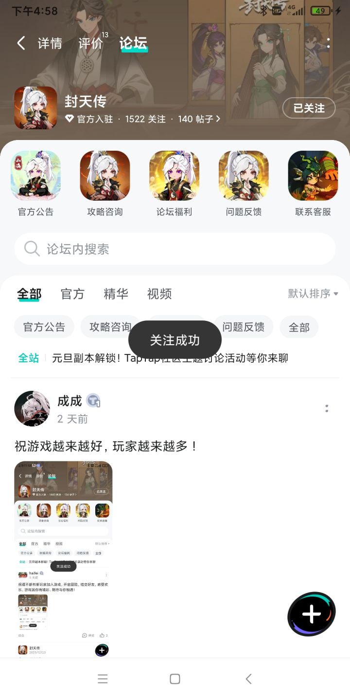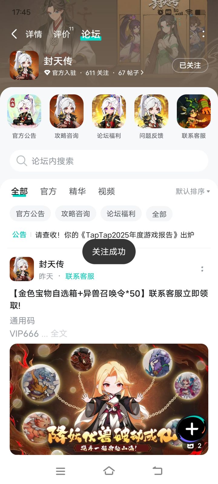 🌟 仙门大开,就等你赴约 🌟不用渡劫,不用内卷,只要甜甜蜜蜜修仙,开开心心收集~快拉上闺蜜、兄弟一起,在糖果水墨世界里,经营属于你的萌系仙途吧!⏰开测时间:2025年12月24日 10:00🎁 开测专属福利:【京东卡抽奖活动】▶ 参与方式1.点击关注发帖账号并预约《封天传》且发新帖晒截图2.在本帖下方评论区分享发帖链接即可【奖品发放】到达开奖时间后,由taptap系统随机抽取符