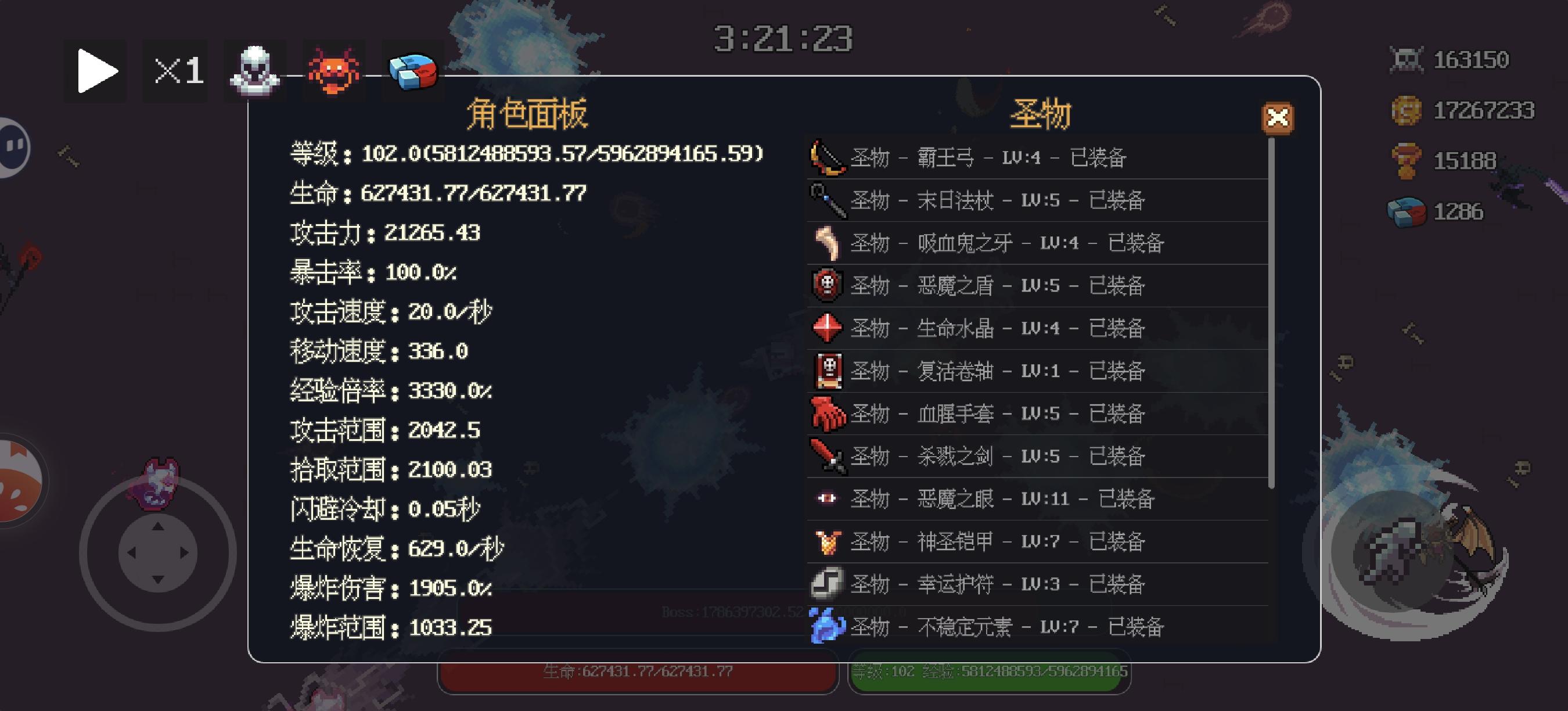 虽然攻击力很低,但血量超高,配上那个血量加伤的圣器,普通攻击伤害也是高得离谱。 就是群伤能力弱,靠攻击力面板的爆炸伤害。