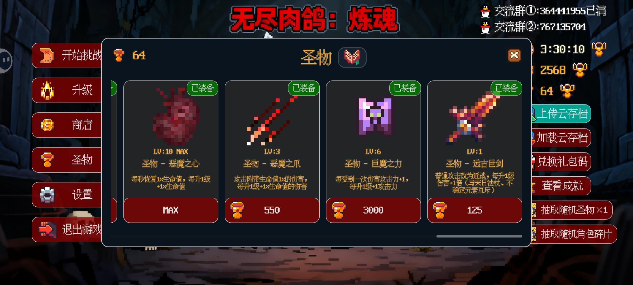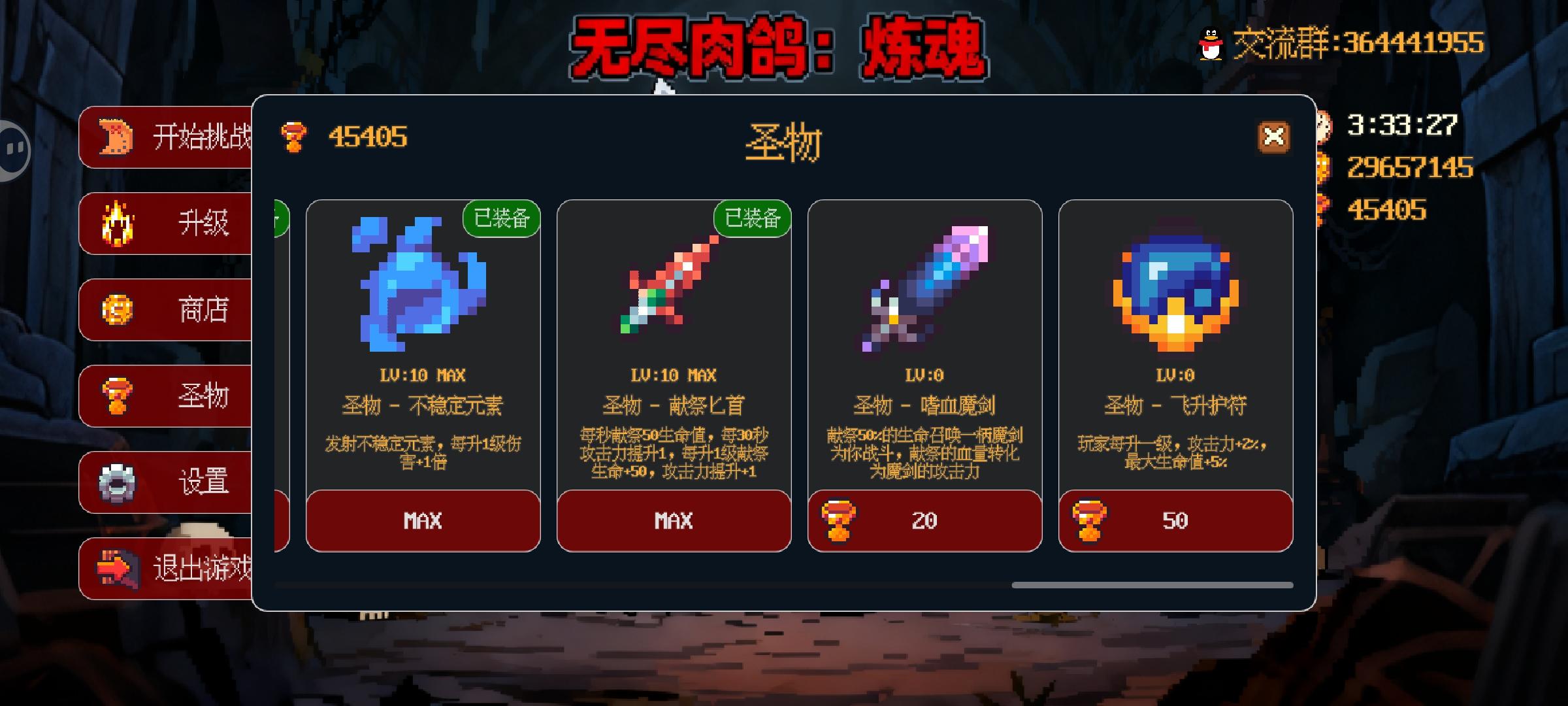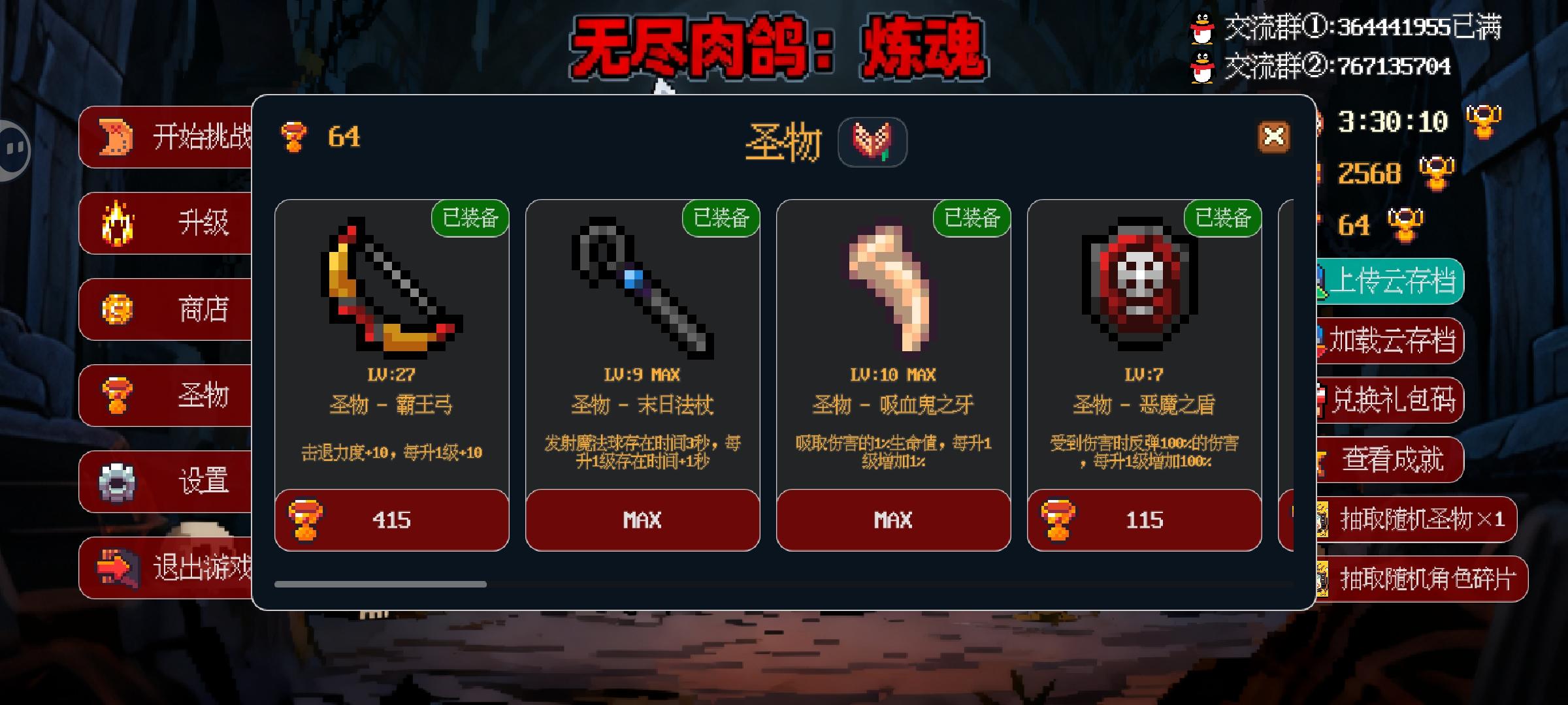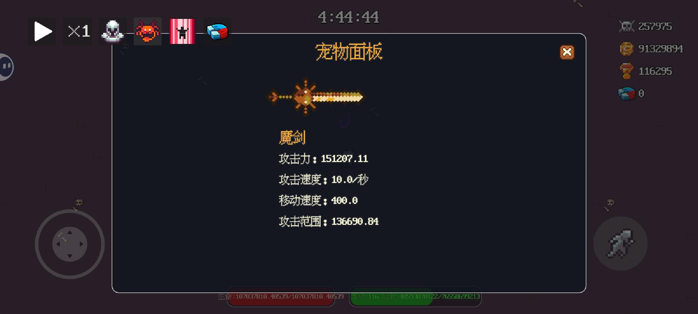 1.新版本拾取范围描述仍然是每级2%,实装1%;2.新版本圣器:【飞升护符】、【守护号角】都是百分比计算,导致角色攻击、角色血量、boss血量、宠物攻击、宠物攻击范围都有小数,建议取整(向下取整就行,不差这点属性);3.希望设置里增加功能:关闭/显示吸收金币/经验,减少这个动画减少卡顿;4.希望新增功能:小窗。方便挂机时候可以一部分屏幕干别的事。