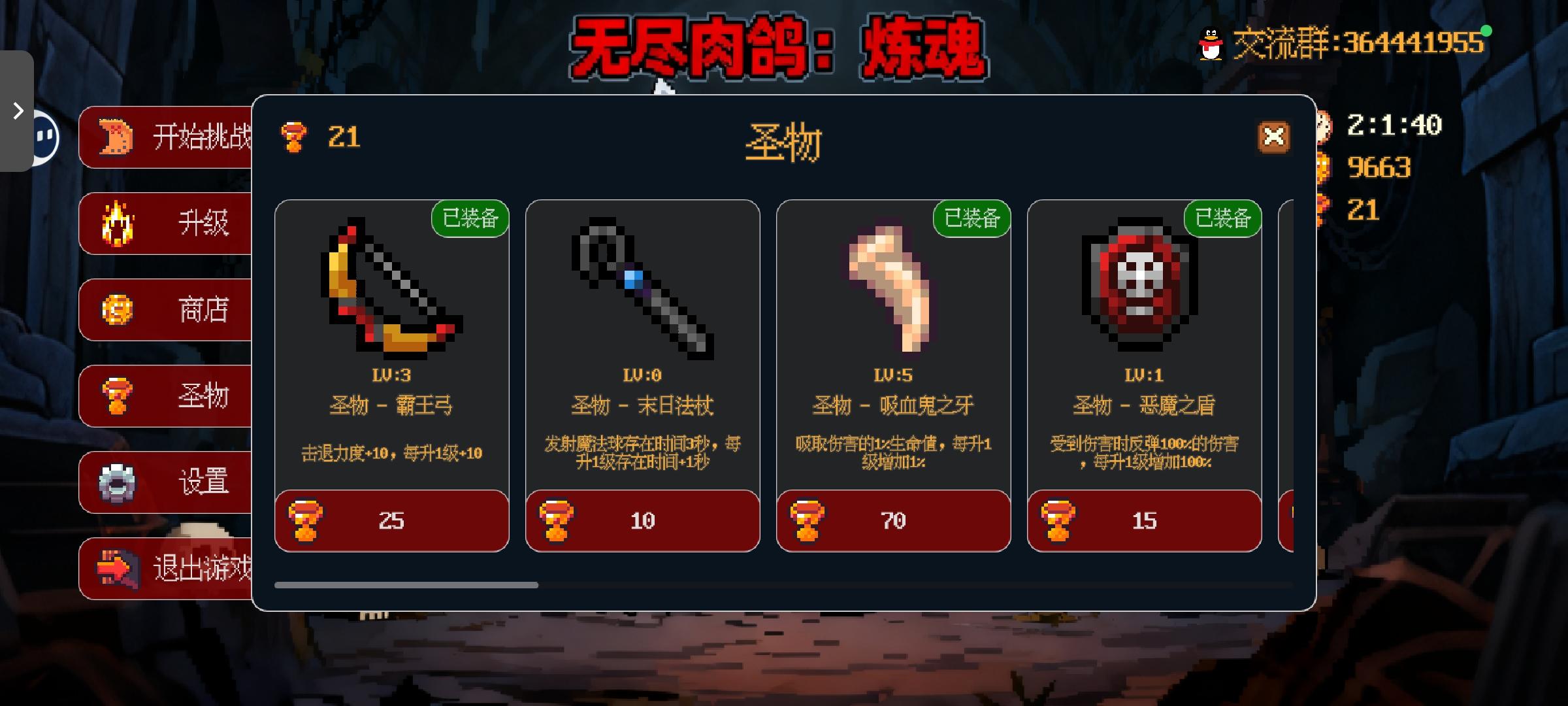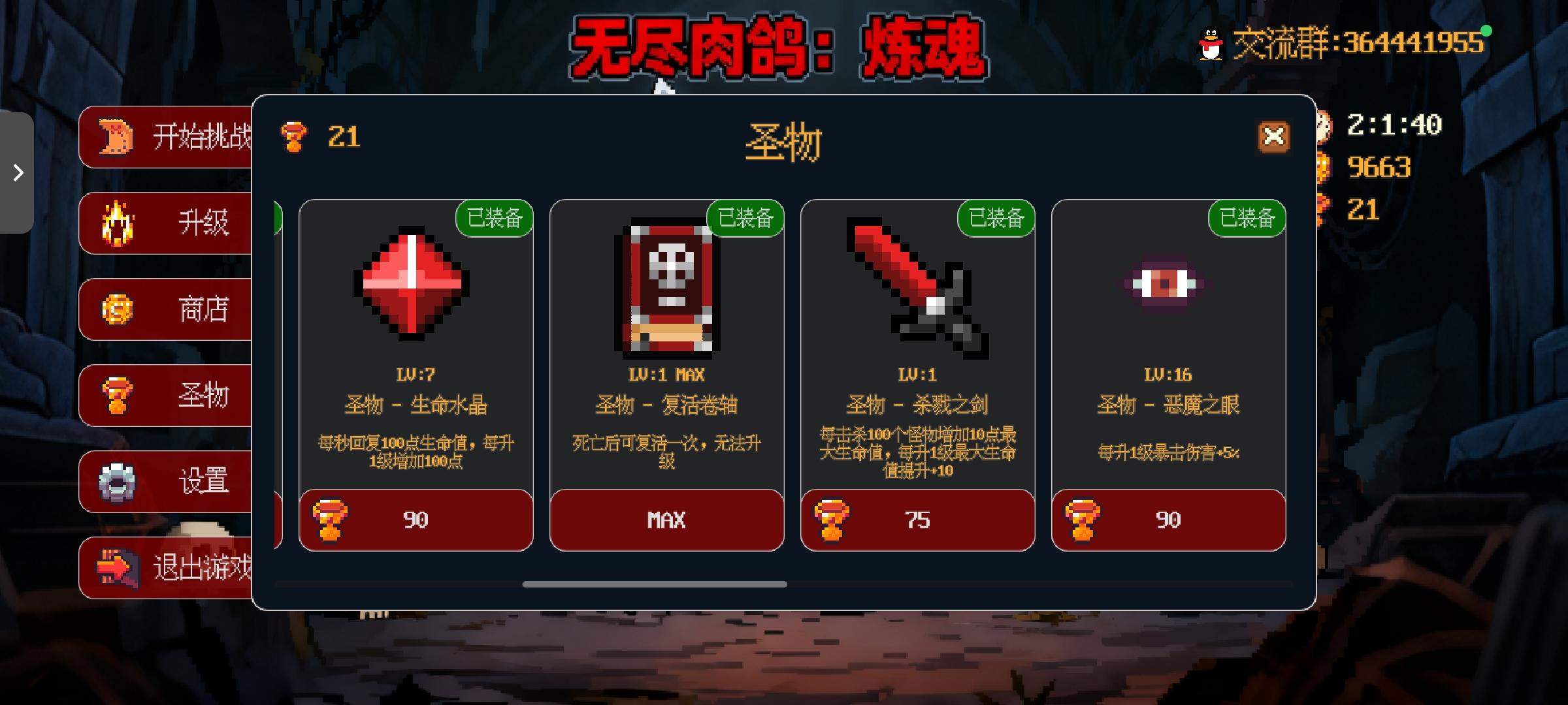1.新版本拾取范围描述仍然是每级2%,实装1%;2.新版本圣器:【飞升护符】、【守护号角】都是百分比计算,导致角色攻击、角色血量、boss血量、宠物攻击、宠物攻击范围都有小数,建议取整(向下取整就行,不差这点属性);3.希望设置里增加功能:关闭/显示吸收金币/经验,减少这个动画减少卡顿;4.希望新增功能:小窗。方便挂机时候可以一部分屏幕干别的事。