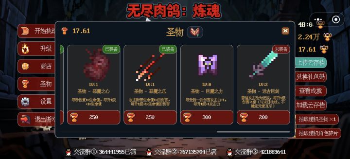 新模式,第二关卡,建议你搞一个一键上装备,还要一个一个的防御塔去上装备,好麻烦搞一个一键上装备,后面再加一个更新当前等级最高的装备,比如说刚进去是蓝色装备,后面出了金色的,再点一件装备,直接上到金色的,就不用一个个的换,一个个的上装备,省很多事儿