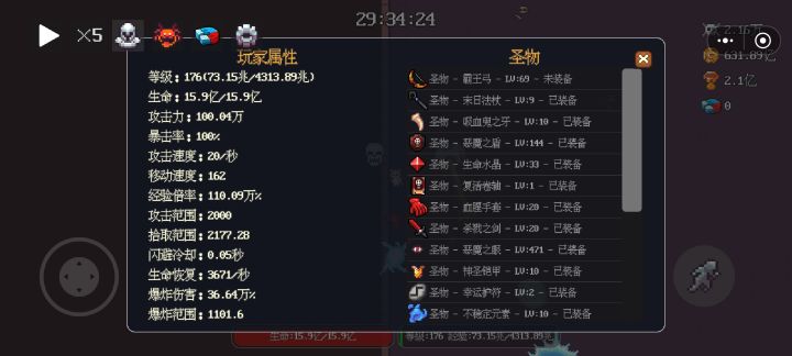 首先打到4个小时之后就可以说是中期了,这个时候基本上圣物都拥有了,圣物上除了嗜血魔剑其他都可以带,但是远古巨剑没满级的话就不要带了,攻击方式确实不是很好,满级之后伤害比那俩个要高很多。其中最重要的就是飞升护符,如果生命等级不是很高(30万以下)的话,就可以把不自动升级打开,然后从零开始打到扛不住(差不多3个小时左右)然后再升级(可以把自动选择打开),然后再把不自动升级关了(因为这个时候杀怪得的生