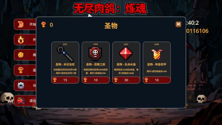 经过几天的熬大夜终于快完成了,这展示的只是一部分圣物,还有十几种,以后也还会持续更新!等圣物版本发布后,就着手开发第二模式啦