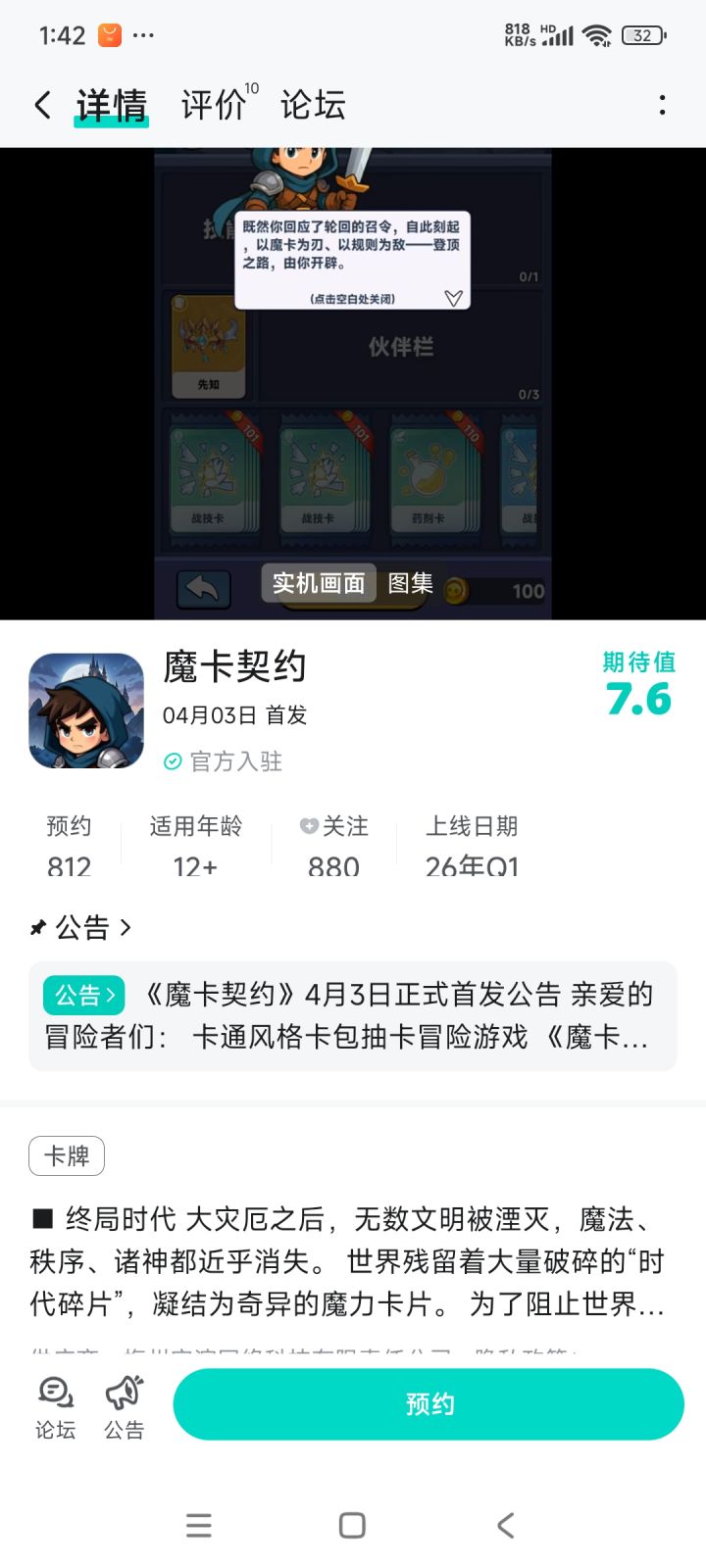 亲爱的冒险者们:卡通风格卡包抽卡冒险游戏 《魔卡契约》 将于 2026年4月3日 00:00 正式上线。感谢各位玩家一直以来的关注与支持,欢迎大家加入这场奇幻的卡牌冒险之旅。在《魔卡契约》中,玩家将通过开启卡包获得各种魔力卡牌,自由组合不同卡牌能力,打造属于自己的战斗流派。在不断挑战关卡、探索秘境的过程中,逐步成长并收集神秘的“王者语录”,向着隐藏境界 “最强王者” 发起挑战。游戏采用清新卡