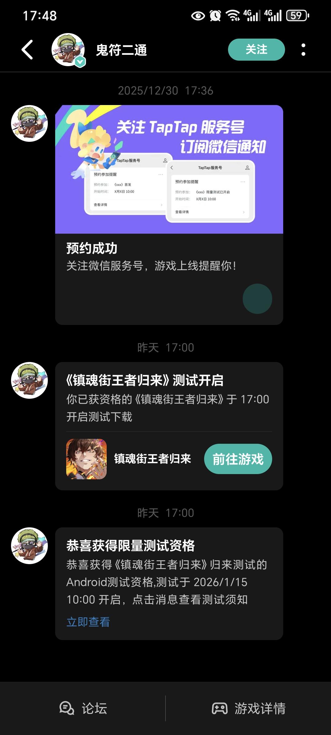 大的来了家人们!近日镇魂街王者归来这是官宣了测试资格的通知。消息一出,立马在玩家圈掀起热议,大伙都盯着名额蹲守,热度拉满! 这次测试资格1月14日到15日不定时发放,之前在各大平台报过名的玩家,得时刻盯紧站内信。拿到资格后14号就能预下载。服务器今天早上10点才开,测试是安卓专属的限量删档不计费测试,一直开到22号,双方还明确表示模拟器方面有限制!不能用夜神、逍遥模拟器玩。 期待镇魂街的