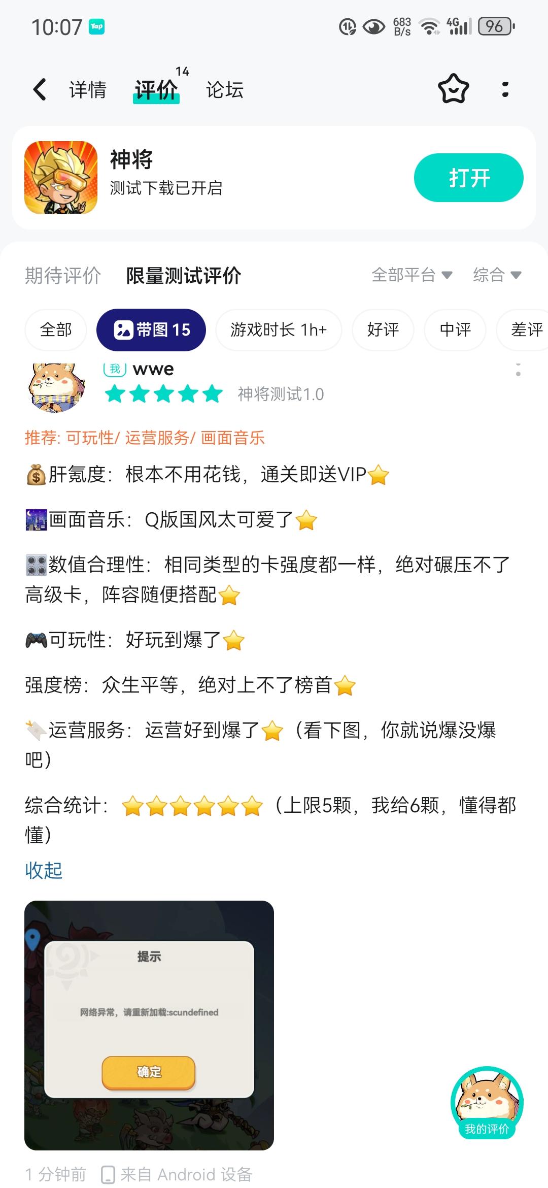 亲爱的玩家们😊, 🔥为了感谢大家对我们《神将》的热爱与支持 。✨我们特别推出了“游戏时长分享活动”!只要你分享自己的游戏时长,就有机会赢取丰厚奖励。快来参与吧,与好友们一起分享你的传奇之旅! 【⏳活动时间:长期】 ✅ 参与方式:在本帖下进行回复,发送您在TAP我的游戏页面截图,展示您的游戏时长。 🎁活动奖励:所有参与并提交有效截图的玩家,都将获得一份礼包作为奖励。 📦 普通任务奖励内容
