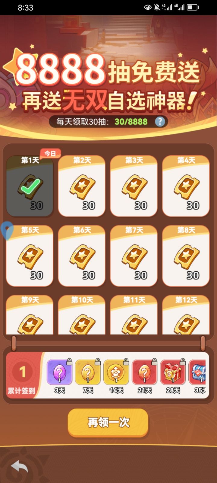 我是冲着测试服福利多来的,上线玩了一会儿显示十分钟后领8888抽,结果10分钟点开一看,每天领30,要领够300天,哈哈哈哈到这儿我还没弃游,后边一直跟着任务指引做任务,有任务实在过不了就充,充值礼包显示买的礼包角色100级,到自己手里才1级,到这儿我还没弃游,一直打一直打,,小氪不到100,打了一会儿又卡关了,想着过一会儿第二天了,看能不能抽出强力角色,一直熬到12点,上面还是显示未到第二天,如