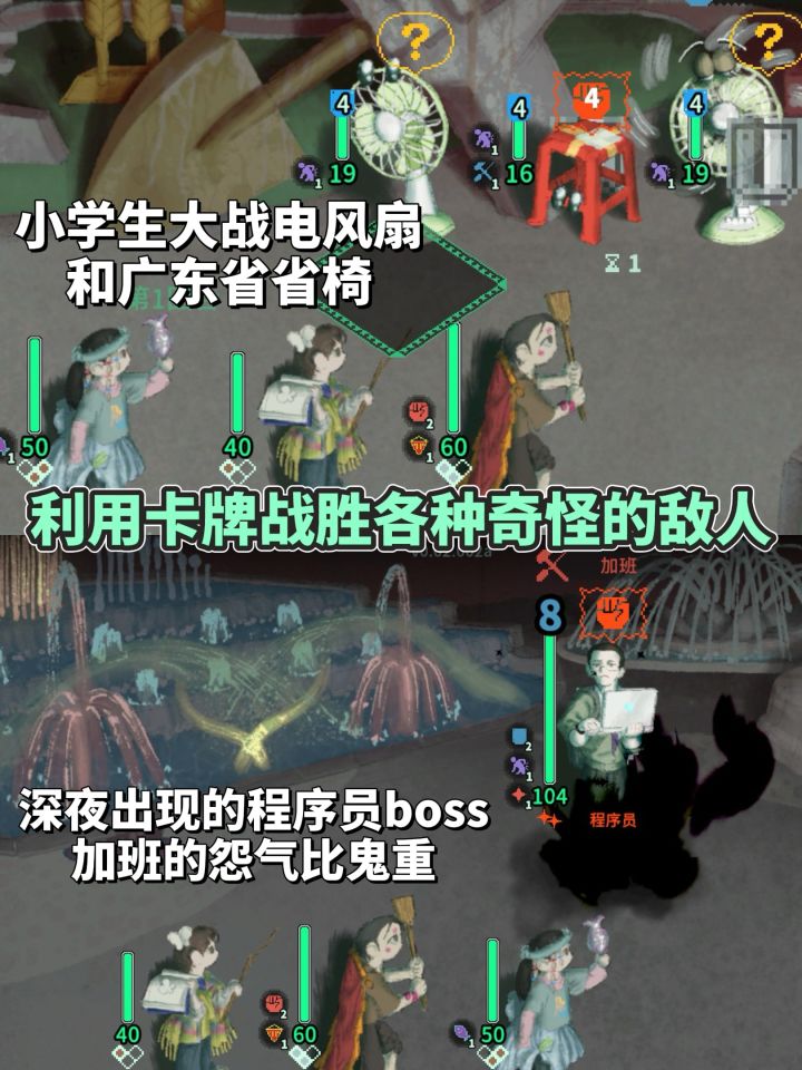 看我又在Steam挖到了什么好东西?画风超级独特的奇幻中式梦核游戏! 游戏里满满的千禧年风味,夜色笼罩下的神秘公园,滑滑梯、恐龙乐园、健体草坪……在草丛里捡别人不要的瓶盖,趁老板不注意,在漫画摊偷摸看书,放学后在小卖部挑选各种口味的话梅丹,……一切都熟悉又陌生,好像回到了那个无忧无虑的童年。 游戏的玩法是卡牌肉鸽,与最多三名小朋友一起,大战公园里冒出来的奇特敌人,透明