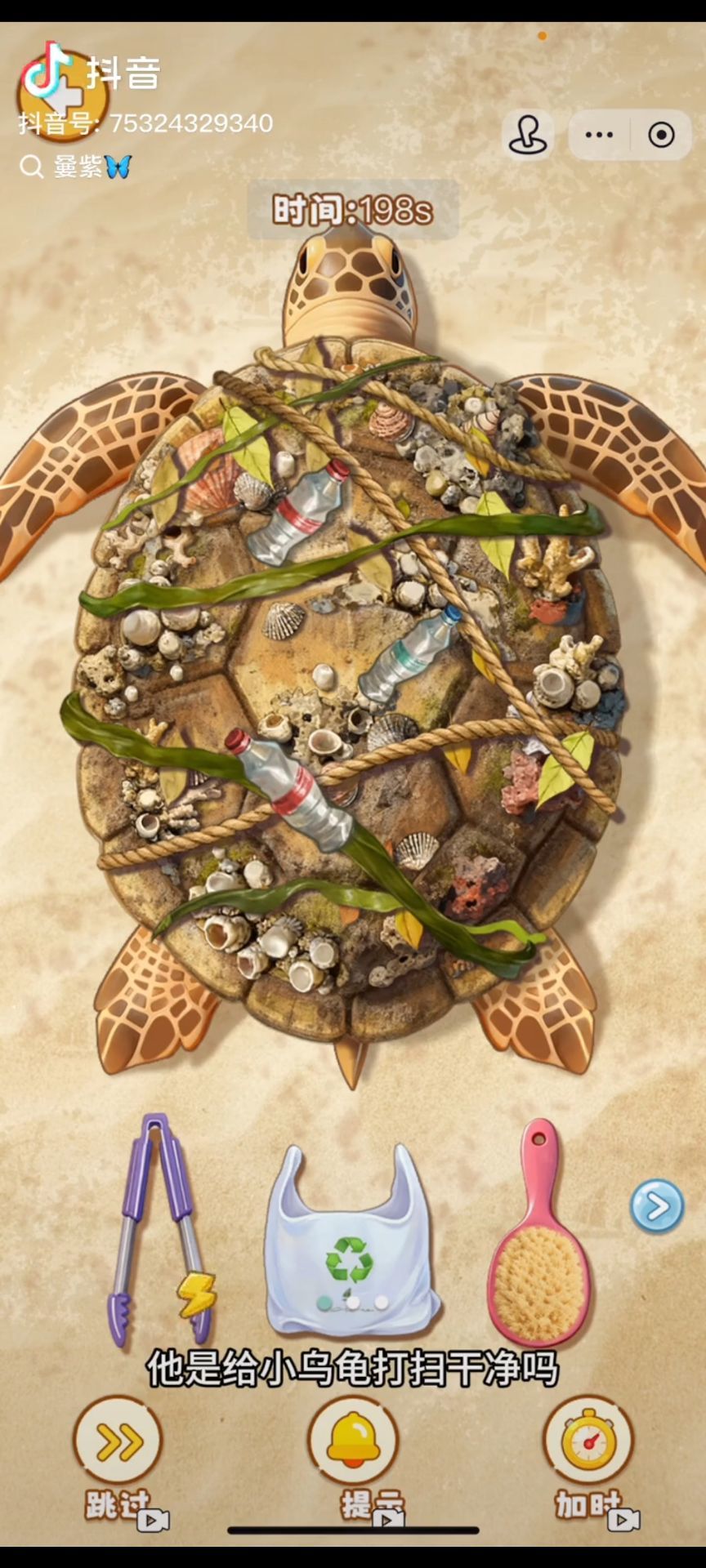 各位玩家好~本次分享 「清理藤壶」休闲解压关卡! 关卡聚焦海洋生物守护主题,操作简单易上手。首先用专业工具轻柔清除海龟身上附着的藤壶与海洋附着物,避开皮肤敏感区域;随后切换至清洁模式,用海绵与温水为海龟进行全身清洁,细致刷洗龟壳上的污渍与藻类,见证海龟从负重前行到洁净如新的蜕变全过程。 游戏过程中,舒缓的海洋背景音与细致的清理特效交相辉映,让你在每一次精准操作后都能收获满满的成就感。放松的节奏,让