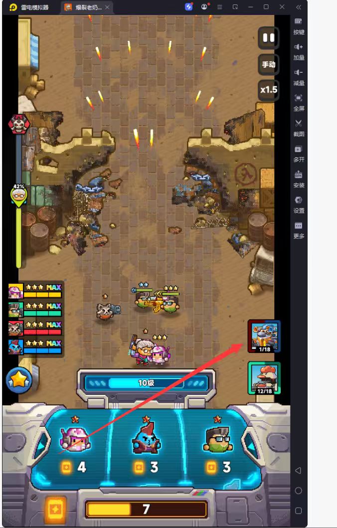 如图,通关人物等级,机甲。。。开局以枪手为主,出个奶妈,然后靠吹风,晕眩拉时长。。。优先2级枪手,1级奶妈,保证不死的前提下,能不用滚筒尽量不用(输出不足的情况,遇见那个召唤怪近身,才用滚筒吧)。。。因为怪杀的太快,不容易发展起来。。。这阵容主要靠炸弹人,技能选择一定选择最高星晕眩一秒,后面还有晕眩+1秒的一起拿了,这2个是核心技能,出了这2个以后,选择加炸弹范围的(就是为了打boss那里能大