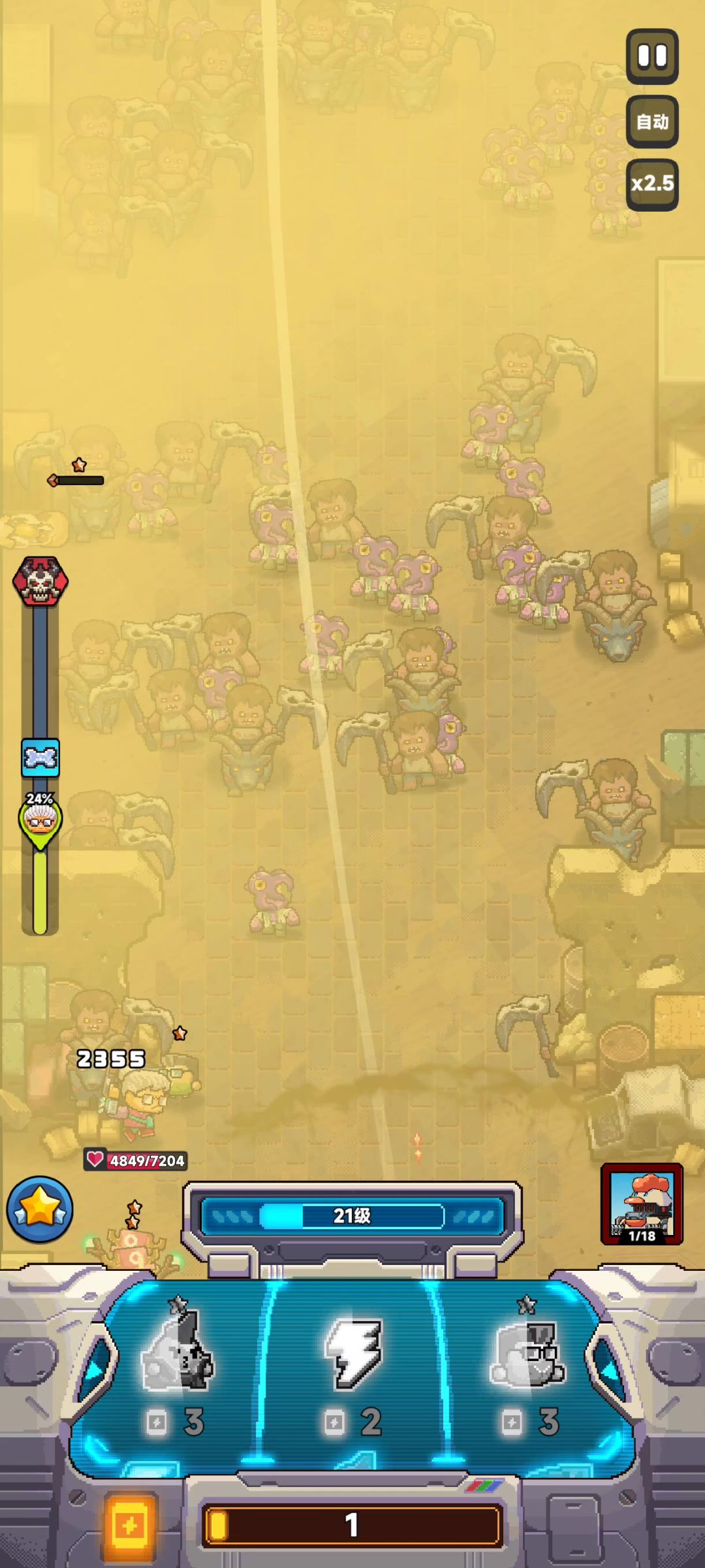 由于目前游戏bug严重。。。舍弃机甲,只能靠不升星人海战术来打! 进游戏给的第一个技能是无效的!!!只要角色不在场,选择的本角色技能是吃不到加成的!!所以第一个技能别浪费刷新次数,选个最垃圾的!!!! 技能方面 机枪:就开局用一下,技能无所谓。。。因为大多数局里面通关也就18级左右,选择次数就那么多,机甲又不能继承技能,就别浪费在这上面 炸弹人:优先选择晕眩跟晕眩+1技能,额外选择加范围,加丢炸弹