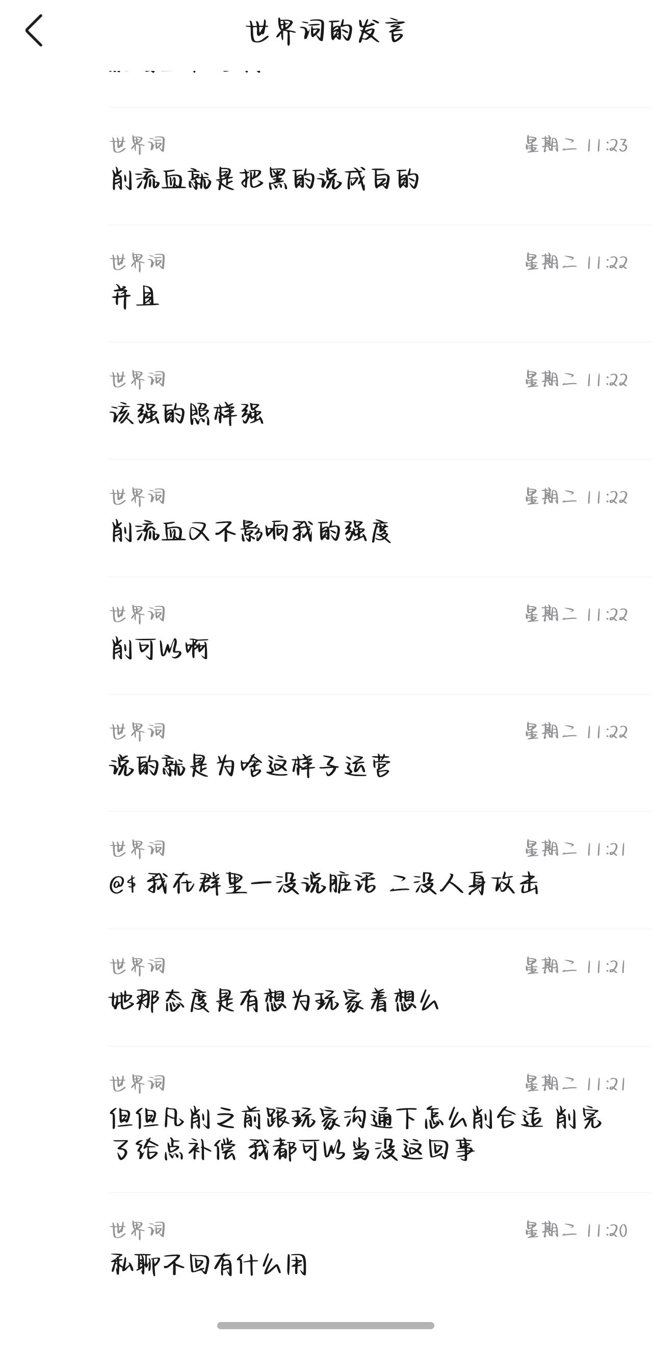 这个叫世界词的就是那个氪了一点钱后,觉得天老二,我老大的那个榜一。 在游戏群里指手画脚,想让作者围着他一个人转的氪金大佬。作者更新什么都要听他的,不听就开始大喷特喷。一副‘老子花钱了,老子就是上帝,你就要给我跪着服务’的所谓榜一。天天在游戏群里阴阳他人,搞得是只有他花钱了,别人没花一样。只考虑自己,以自我为中心 ,不考虑大部分玩家的游戏体验。属于那种即当又立的人,说话表里不一,喜欢大喷特
