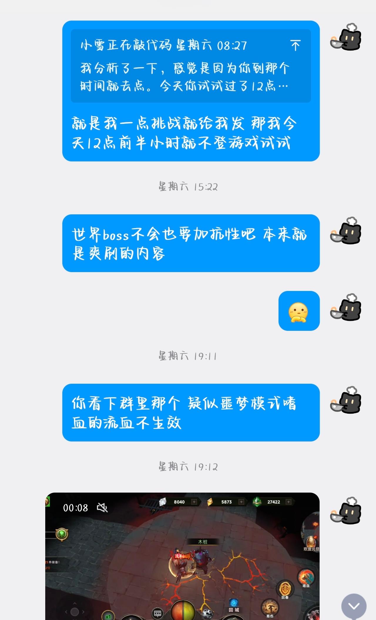 1、作者更新啥都要听我的? 流血削弱我都是几个小时后才得知 知道我第一时间测试发现流血直接挂不上相当于废了 然后我问作者这样合适么 我全程没有过激语言 但她直接不回复削弱当然很气人 是怎么削弱的呢 技能描述是命中就可以挂上 作者直接推翻改成破防才可以挂(甚至技能描述都不改哈哈) 这样流血直接废了 优化是把写在技能页面上的东西随意推翻是吧 最后是群里其他很多玩家也不满 她迫于压力才回调的 2、