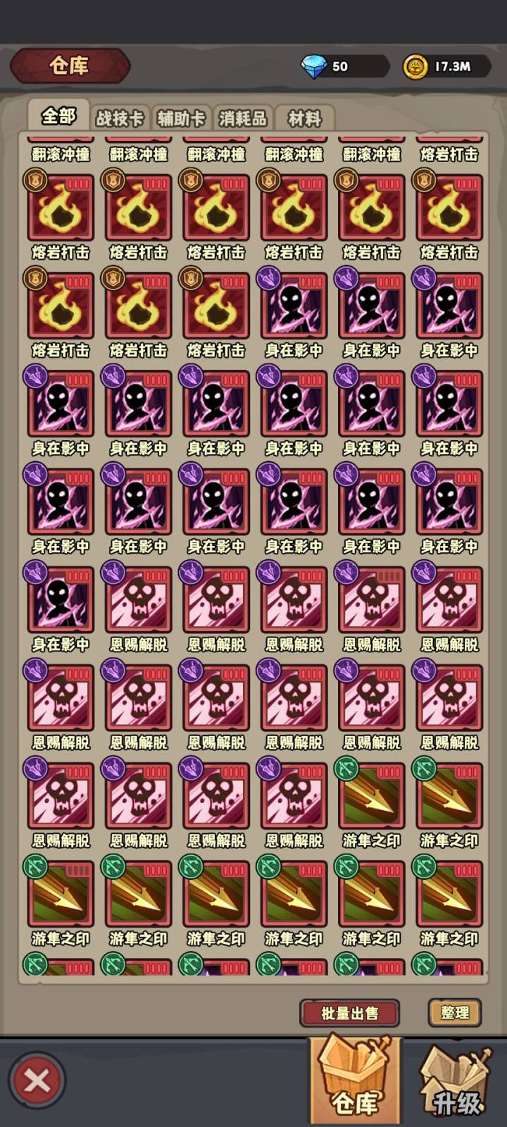 一切资源都等从对局中获得(卡,消耗品和材料卖金币,红色升级材料卖钻石,金色升级材料混沌出,概率挺高,红色升级材料混沌钥匙宝箱出,概率极低)
