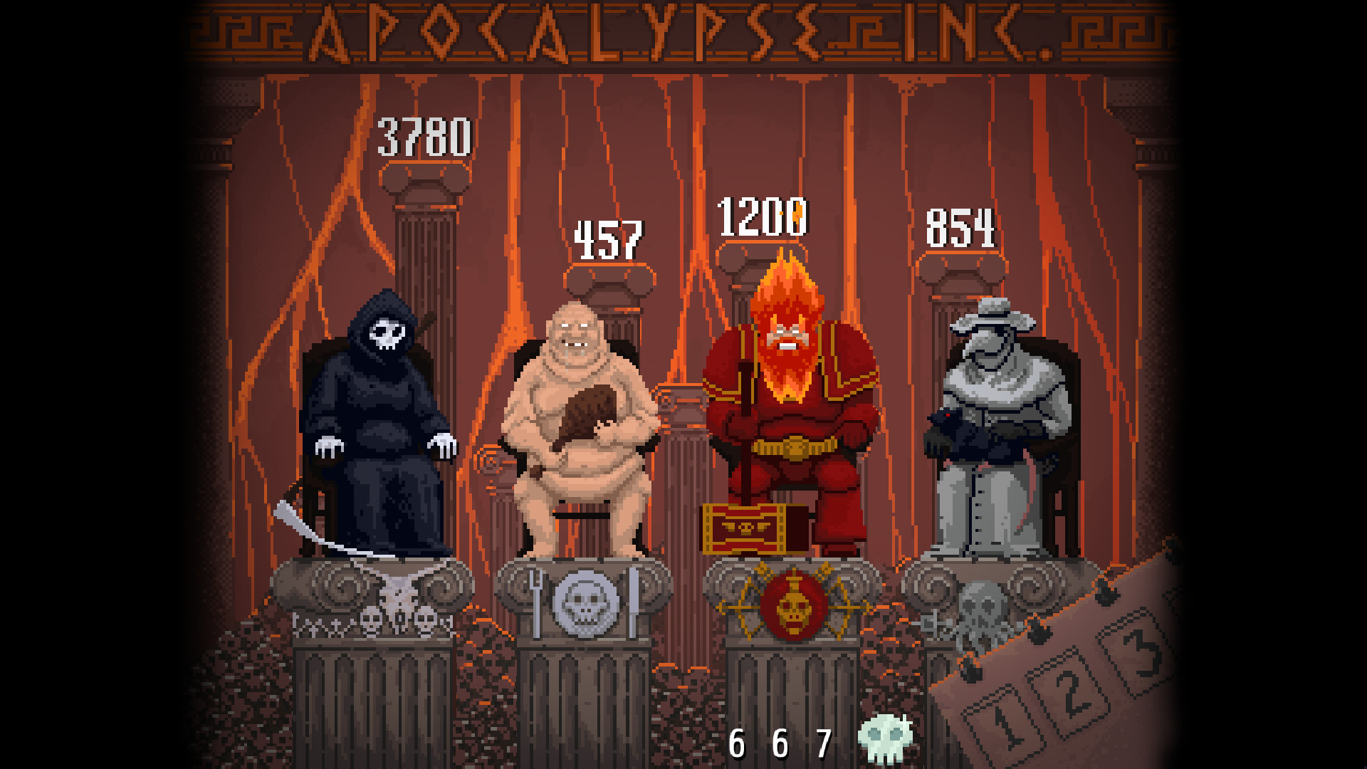 ——是一款复杂的"街机模拟风格"游戏, 游戏中你将扮演在Apocalypse公司替死神工作的收割者,将客户分配到天堂、地狱和炼狱。你将面临一个复杂难题:通过为期七周的试用期,获得正式工作并帮助你的雇主——死神提高收益。
