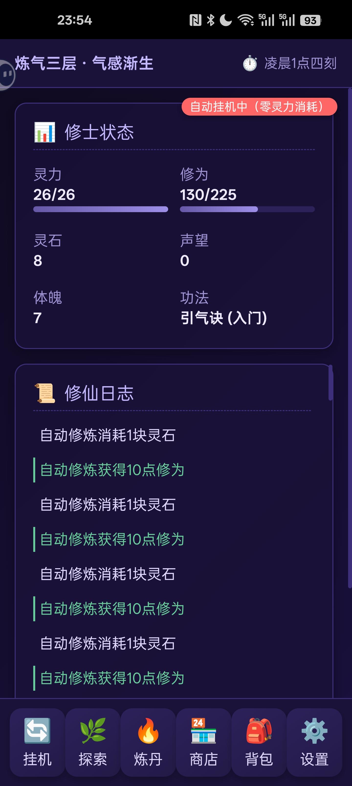 没啥东西啊,就无限花两点灵力探索搞灵石,要么用一块灵石换十点修为,要么存灵石做丹药,可是做的丹药还有恢复灵力的?这玩意自动回复不是挺快的,修为提高加的体魄也不知道有啥用处,就算花50灵石买了唯一的紫色武器,接着呢?