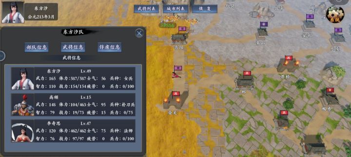 玩法上建立在三国群英的基础,可玩性还是比较强的,就是游戏优化还不够,不是那么流畅,撑过开局没等级没技能没钱没兵的阶段,东方汐3阶军师技就能出山混一下,4阶世界地图就无敌了,这里武将攻速不够,小兵伤害又高,单将165武力近600体力也打不过50个小兵,所以东方汐出了4阶军师技完全不需要爆兵了,钱也会多到没处用。另外吐槽下这里的士气的设定有问题,按原三国群英打赢了会加士气,这里并不会,只能嗑药补,疲