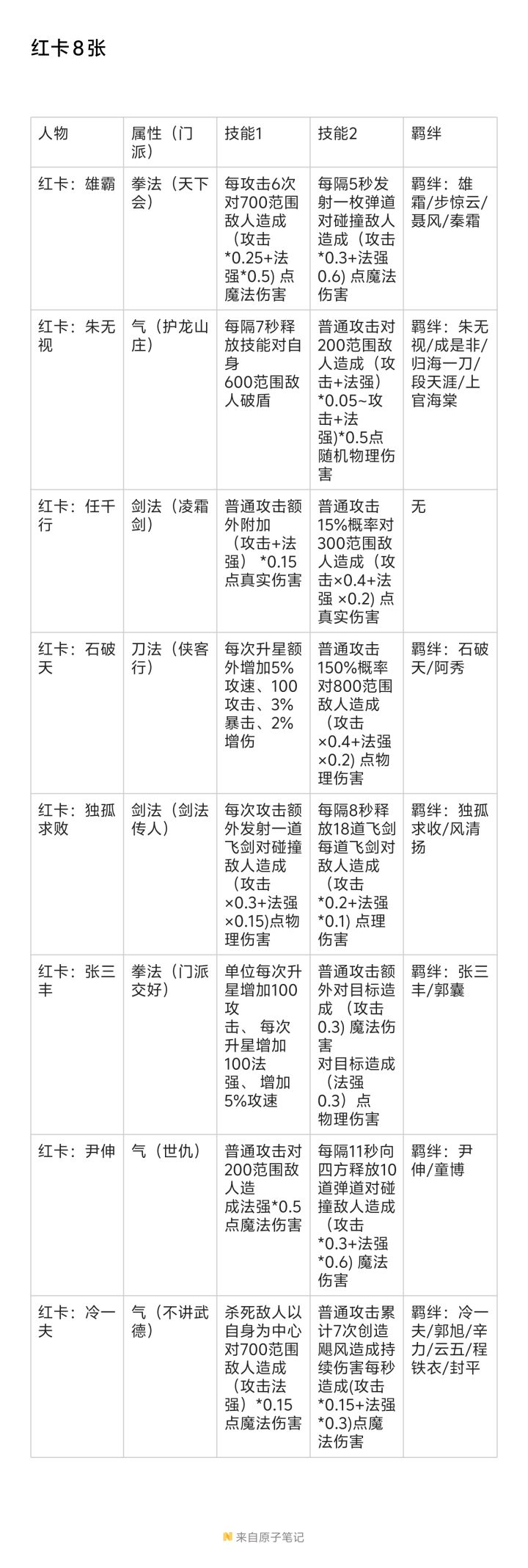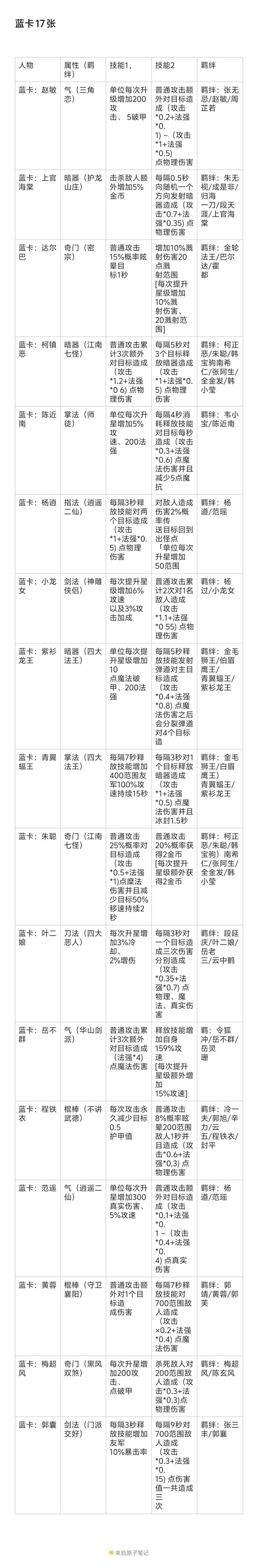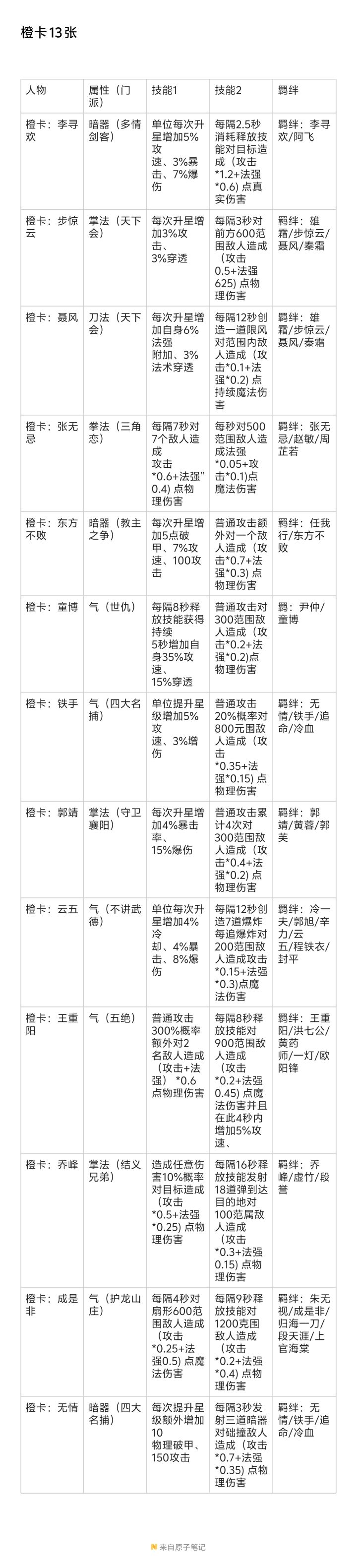卡牌图鉴(文字版)