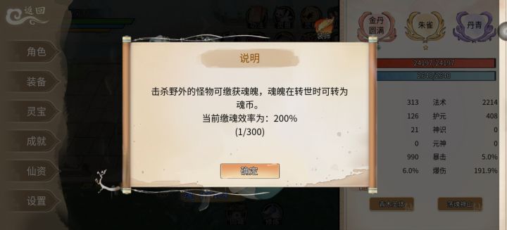 玩到打不过高级图的劫尊的时候建议去打能秒的野外劫尊弄魂魄,轮回的时候魂魄会变成魂币,建议多打野外劫尊,练气期劫尊一个能加600左右,筑基劫尊800左右,金丹1000左右以此类推,魂币用处很大轮回后可以去阎罗哪里换灵宝大箱子,先换好感度把好感换到知己然后就换灵宝箱子只换10个一组的灵宝大箱子就是最后那个,花16万魂币跟60万灵石就能换十个这个性价比最高,如果不够换就存着等够了在换。
