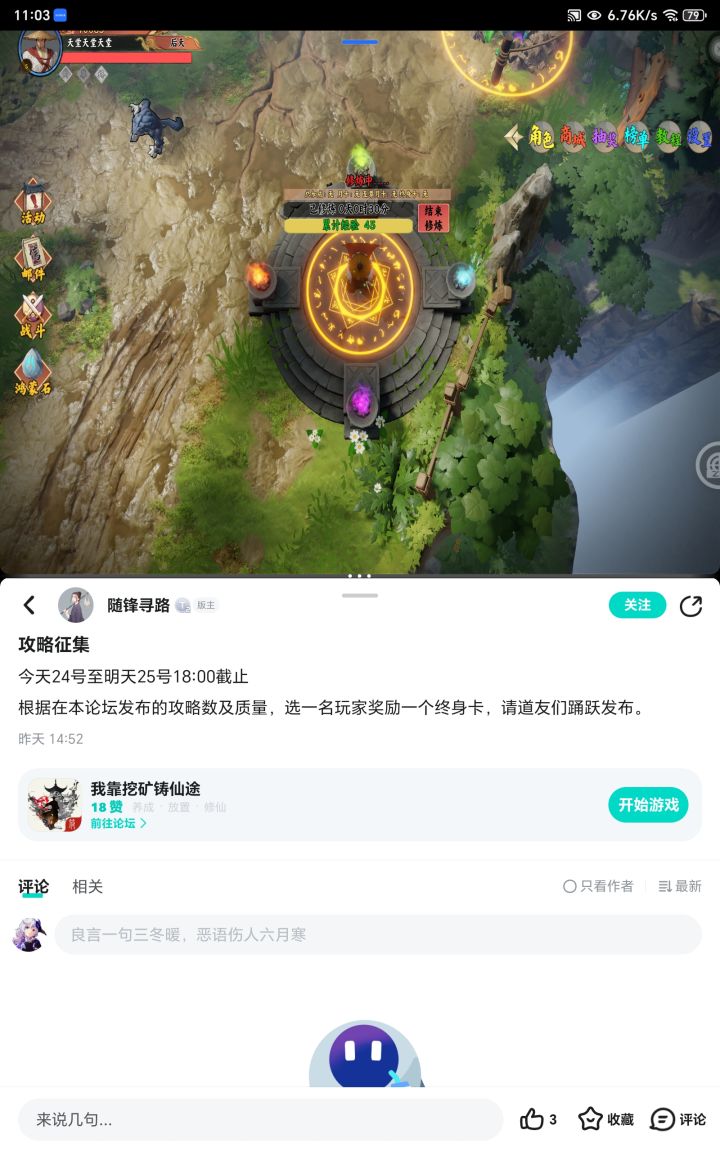 #打个破石头就修成天道攻略 ①仙🍑篇⒈每人仙🍑上限值:30+[15(购买月卡可激活)]+[25(购买至尊月卡可激活)]+[20(购买永久卡可激活)]⒉仙🍑值低于次大值时每15分钟恢复一个仙🍑⒊仙🍑收益最大化方法:尽可能的消耗掉所有仙🍑,然后商店每天可以购买的投资,不要一口气购买完先购买5个,然后打完了然后再买,这样的话可以不影响正常仙🍑恢复所获得的量从而达到利益最大化!!!②天榜挑战篇⒈