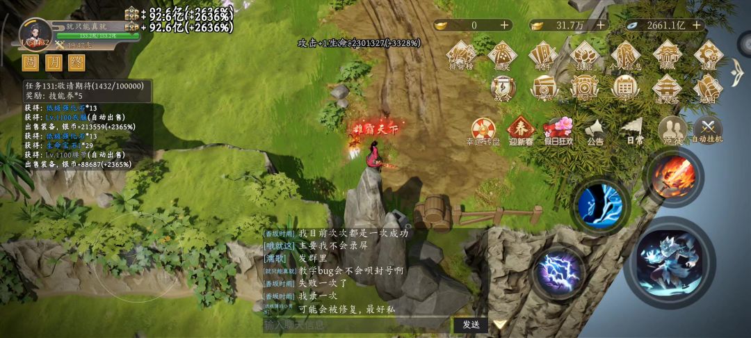 剑修篇:爬塔到50层拜师,带上魂去能打的最高关卡挂机几个小时,然后接着爬塔,200,400,600各换一次装备,技能带魔狼,眩晕,突突,剑阵。通天塔500就可以种树了,先把挑战奖励的种子给种了,收益拿来买攻击果实,通天塔早日打到800层解锁巨树平原,挂机经验更多。600级出师以后确保通天塔打到了1000层解锁天门,宠物推荐带四白虎鹰,不升级生命技能,宠物不用生命果实,生命吞噬宝物,走极致攻击