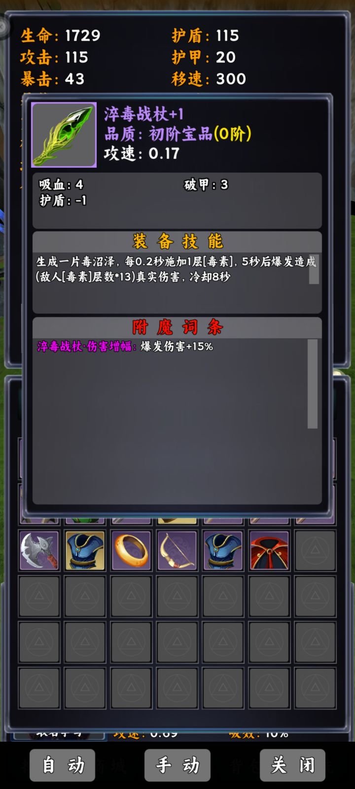 #游戏攻略 传承:邪灵 装备带毒就行淬毒战杖必备 淬毒匕首带毒系附魔也是极好毒戒指真实伤害,回血咱看不上,传承本身回血就够用当然我那个自然斗篷是刷初始来的。具体方法就是删档完成第七个引导送的首领装备,诅咒魔杖搭配附魔加五毒素主打一个在淬毒战杖技能时间里叠毒层数,最好带自然斗篷,容错高血量够,,这套玩法主要心得就是叠毒战杖爆炸伤害。堆暴击属性!留意附魔和任何毒素有关的劲量凑齐。