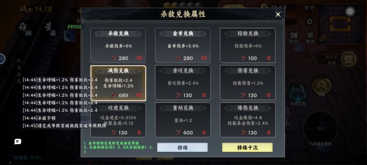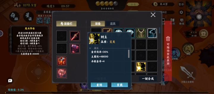 前期我是先挑战主线任务两次然后云挑战,主要是挑战第一个属性攻击。第二个属于防护然后去地图🗺️中上↑或者中下↓有两个小精英怪。然后慢慢的升级杀怪兑换点我一般加(爆伤),(普攻)上面三个兑换点附带。随着攻速暴击上去。你刷怪的速度也越来越快。这个加点不亏。合成金色品质的(财主)一定要带上。大家可以看到他的附加值还是不错的。有利于你买装备。毕竟钱跟兑换点有限。这里跟大家提个醒:不要依偎的刷装