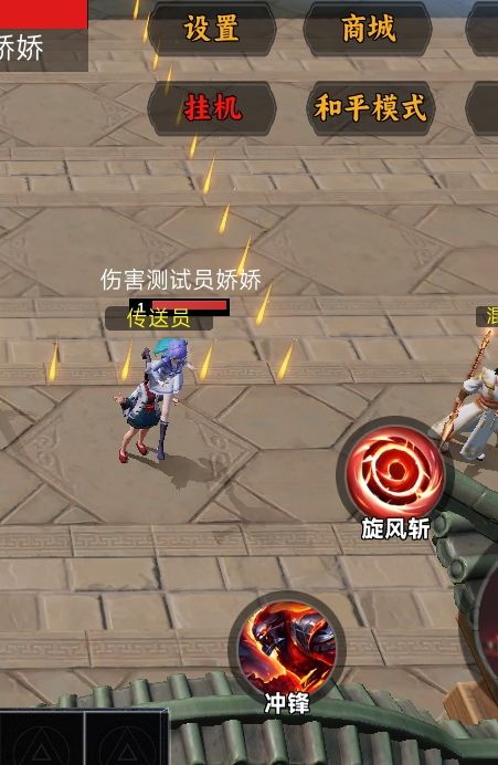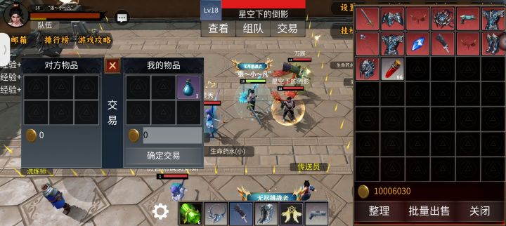 开局有4种职业可以选择,剑士、战士、法师、枪手。选好职业后,直接去找传送员,传送到篮球场(新手村)。前期升级很快,爆率很高,一分钟就可以到10级+一身装备。游戏有免费挂机功能,在游戏界面的上方。设置选项中包含自动拾取,自动出售,根据情况自行选择。身上有五六件装备之后,就可以回城去10级地图(下方快捷栏赠送了10个回城卷轴)。注意:游戏中的武器和盾牌比较重要,都有被动技能属性,有了武器和
