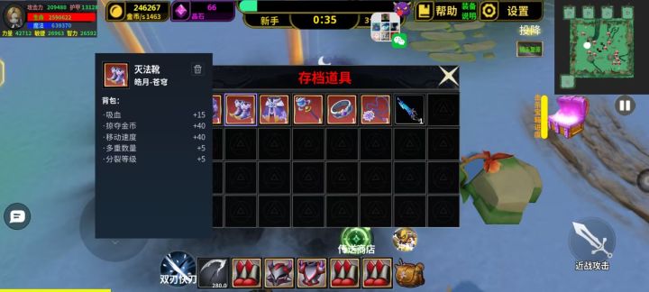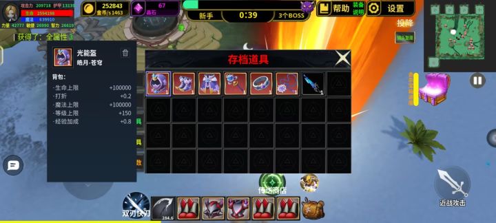 1、装备系统 装备有两种,一种是可合成的,另一种是神器,其中神器需要打神器boss,在商店花3万块挑战,赢了给随机神器,最实用的是加血神器、暴击、减伤等,各位自行研究,只需记住一句话:神器只是纸老虎,逆天还得靠自己。2、装备属性 可合成装备主要分为衣服、头盔、护腿、鞋子、心脏、武器、戒指7种,装备属性分为固有属性和词条属性。其中固有属性与装备部位有关,比如衣服自带护甲,头盔自