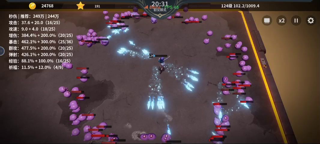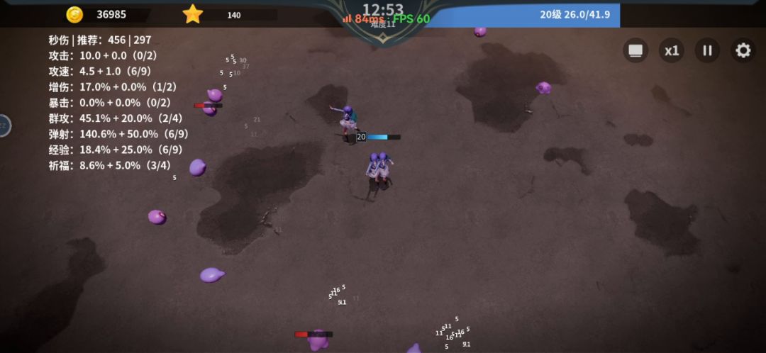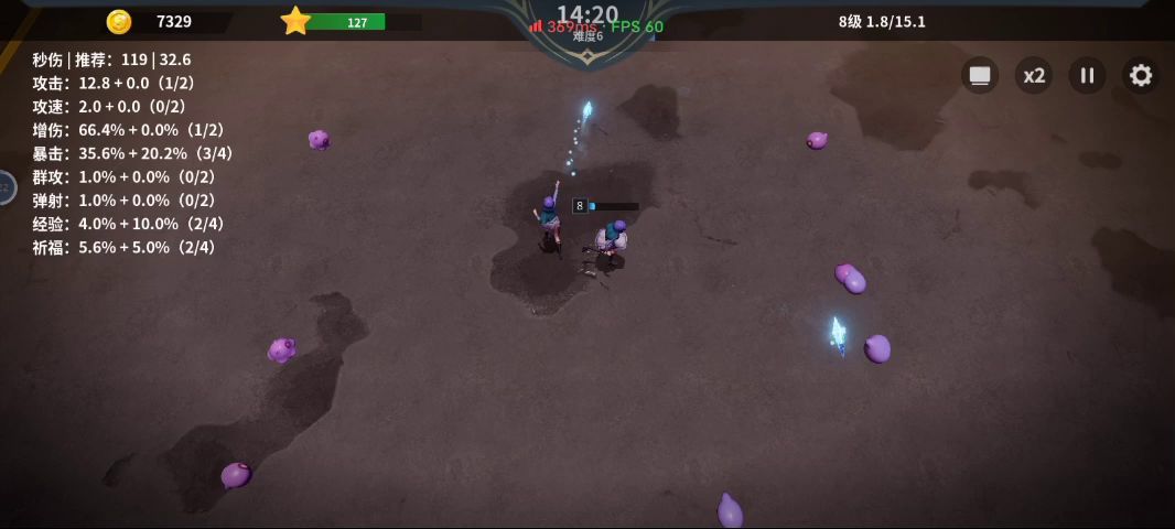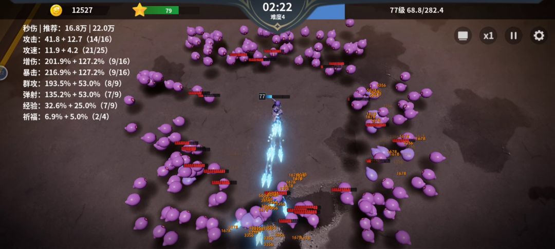 比我刚刚发的加点多升级了个+2,视频完美展示出了游戏的卡顿重启和前期运气完美后期运气不好不触发分身差点暴毙的游戏现状