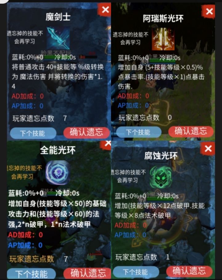 成神之前是7个技能上限,成神后会给一个天神下凡,等于说现在是8个技能,已经超出上限了,再次遗忘会把多出的那一个刷掉,就固定在7个了,所以尽量在成神之前把技能配好#游戏讨论