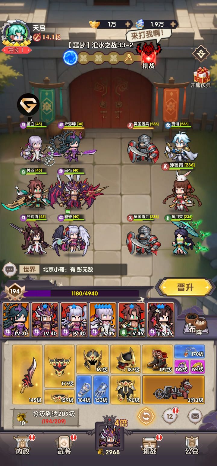刚觉不错,可以慢慢玩,就是有些医院获取渠道少,玩法解锁有点点慢,前期只有那么几个,个人感觉,蜀,群,挺好玩的,没广告这一点就可以支持玩了,武将获取还是挺快的,吕布和貂蝉真的帅,就是所有英雄的立绘能不能做好看点😁