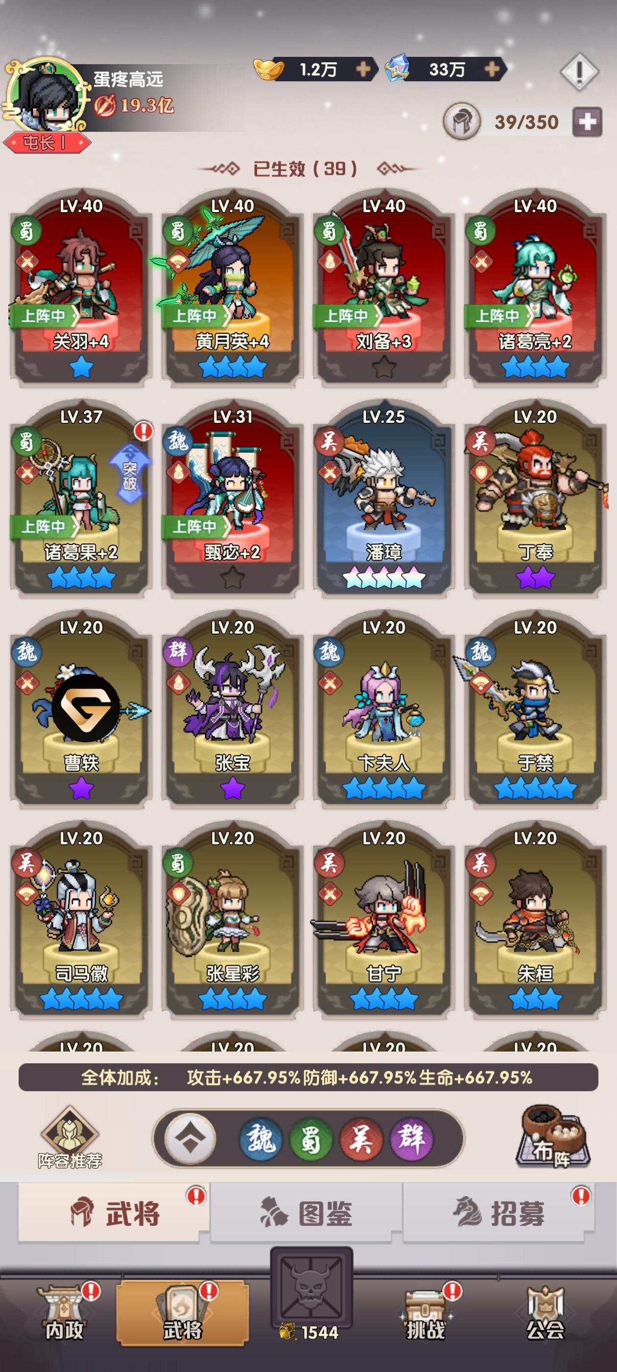 今天刚玩的 自己摸索出来的阵容 因为抽了两个诸葛亮 大招稳定秒除了BOSS外的一个 输出还是很给力的 前排我用的张星彩 大招无敌期间受到的伤害 可以治疗血量最低的单位 比较好用的前排了 前面蓝色紫色的能升星就升星 战力加成比较多 吴国是灼烧流 没有抽到主力 效果现在不了解 可以根据自己第一个抽到的主力 选择心愿英雄 决定自己玩什么阵容里面的各种礼包也很给力 喜欢的可以氪点礼包什么的
