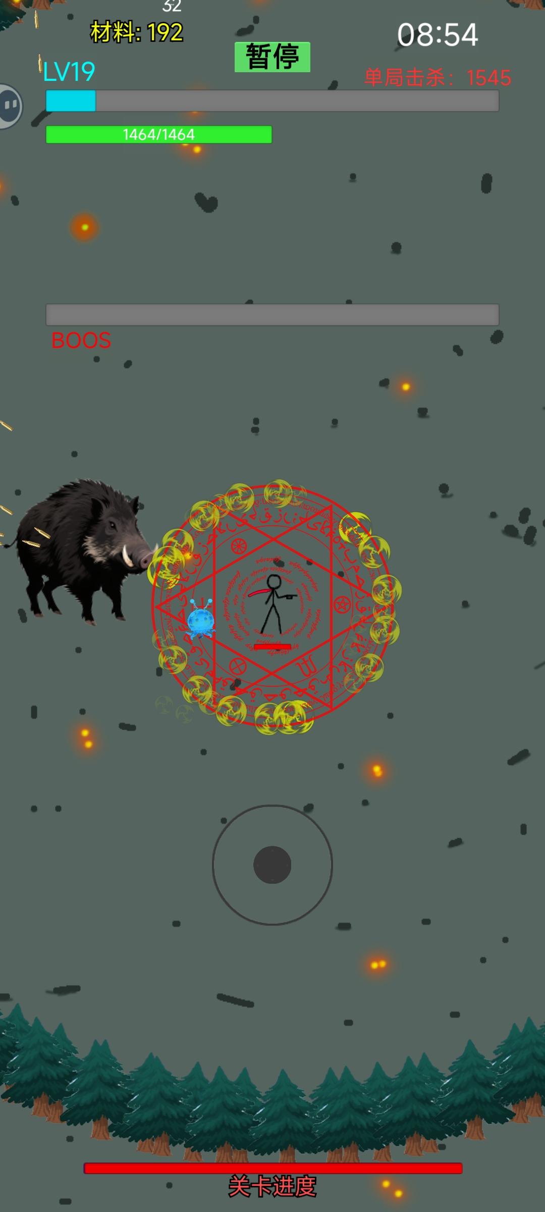 一人开发的类吸血鬼肉鸽游戏,各处设定都很常规,战斗中的技能并不多,仅有几种攻击类的,组合搭配相对单一。战斗与同类肉鸽游戏一样,单手指控制摇杆走位即可,攻击是自动化的。敌人种类较多,有自己的战斗特点,前期骑士威胁较大,装备属性上来了可以站桩刷怪,有些偏数值向。没基础操作介绍,摸索下也能玩,上手不太难。