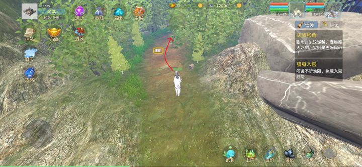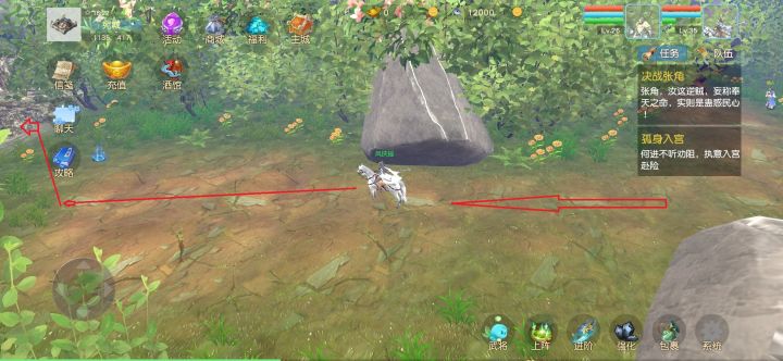 主线剧情任务一直做到宛城外的决战张角,先不要去打!剧情推到这里,应该都有30级以上了,打开天赋界面把天赋点加上(建议每个点1级开启后续天赋点,点满再回头点需要的天赋)。然后点击小兵头像栏,打开小兵界面,招募1个小兵,再使用兑换码666兑换杀神之魂小兵,并设置上阵。(以后有九转仙丹再回来点开技能栏-洗练)传送点的张角很厉害,咱跳过他,沿左边小路往前走,绕过石头继续走,看到