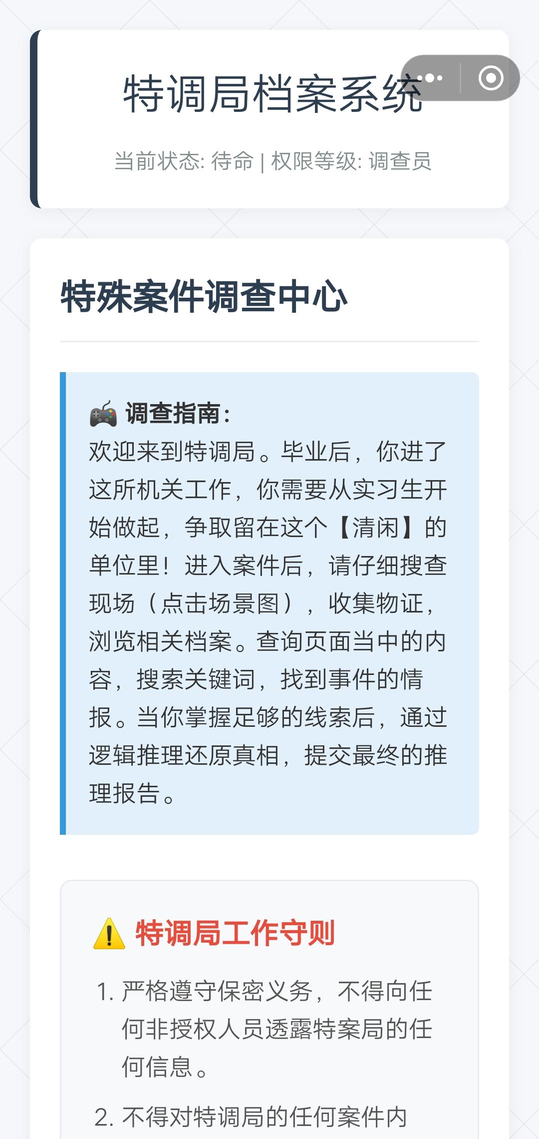 是有一些小bug的!感谢游玩!世界观是写得有点大现在圆不回来了!(不是) 希望什么时候灵感迸发有下一案的时候还能再来我们特调局转转!
