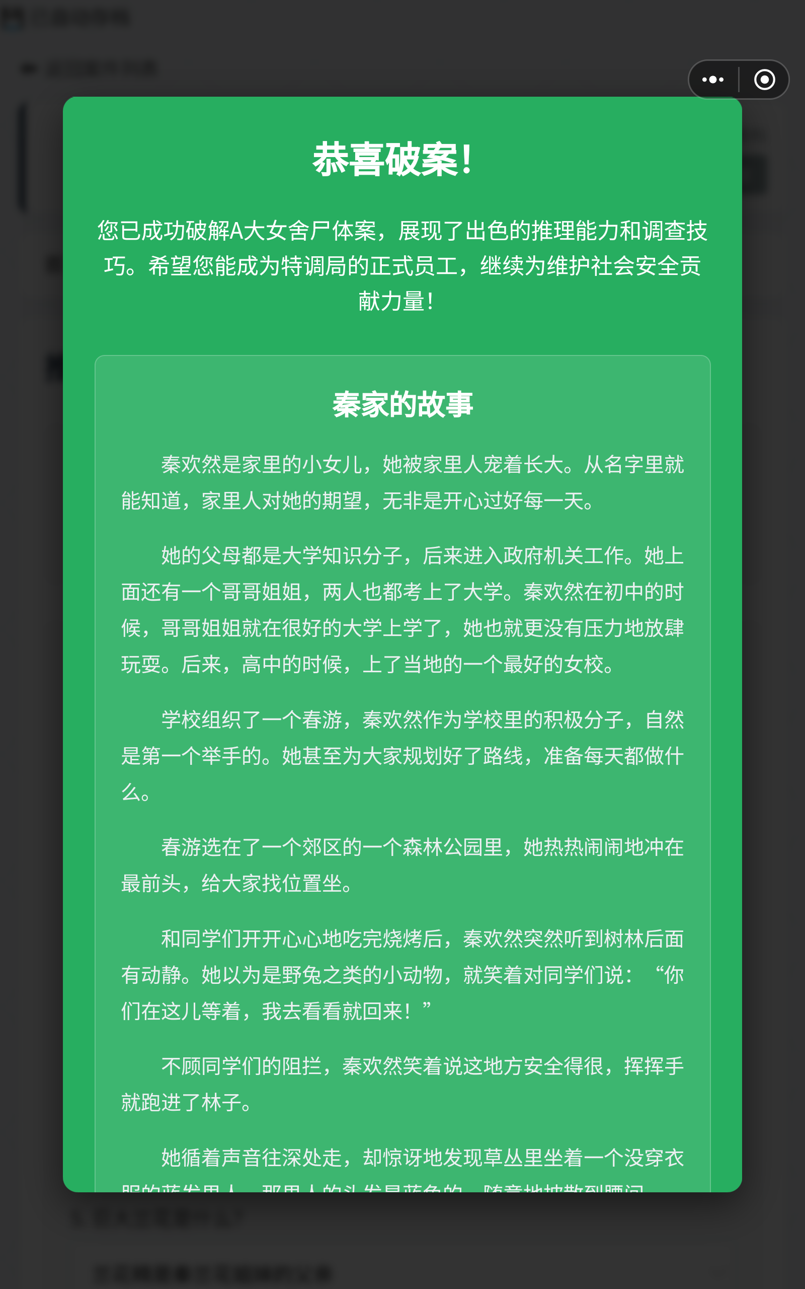 哇玩了100分钟!!!其实原来的框架就是小说哈哈哈哈哈小说没人看()后面的案子还没想好暂时没灵感啦——