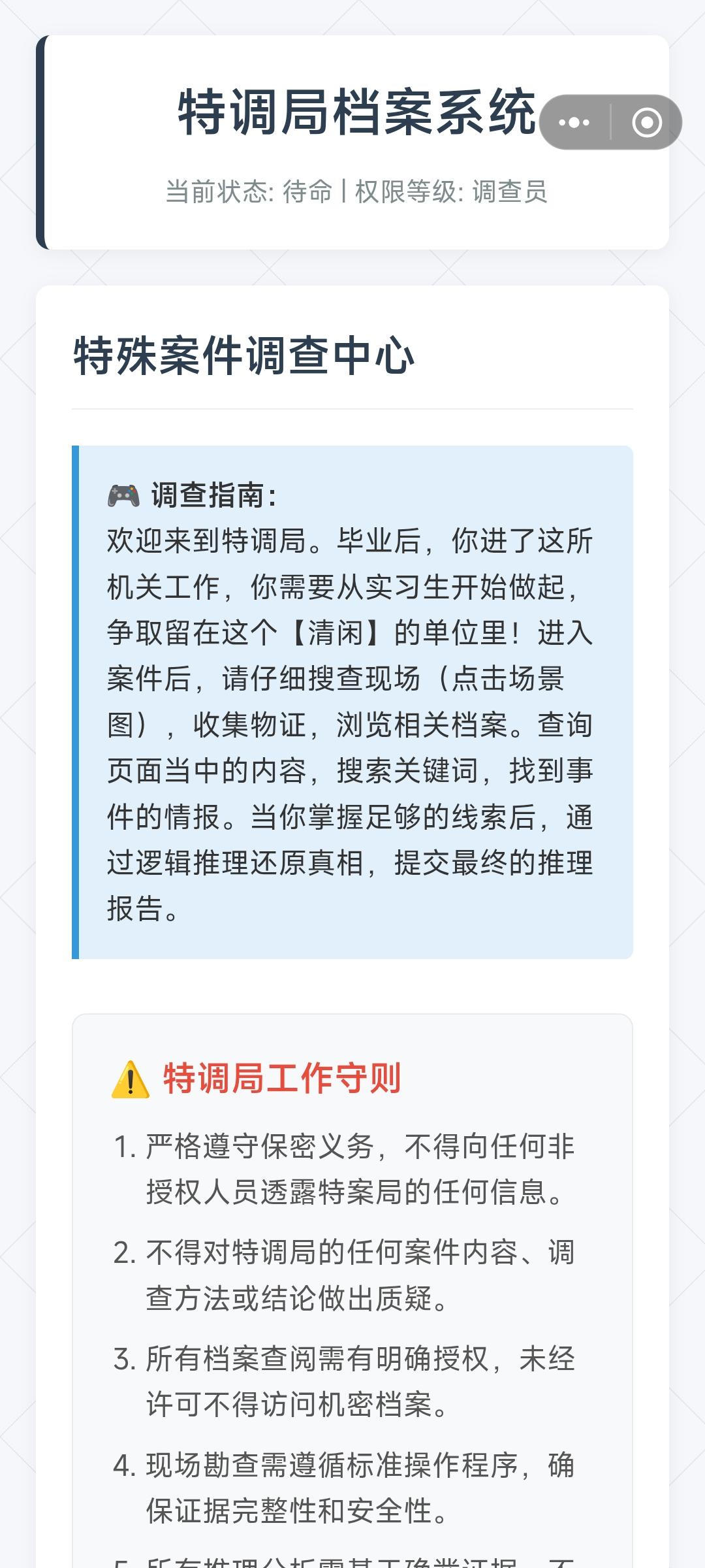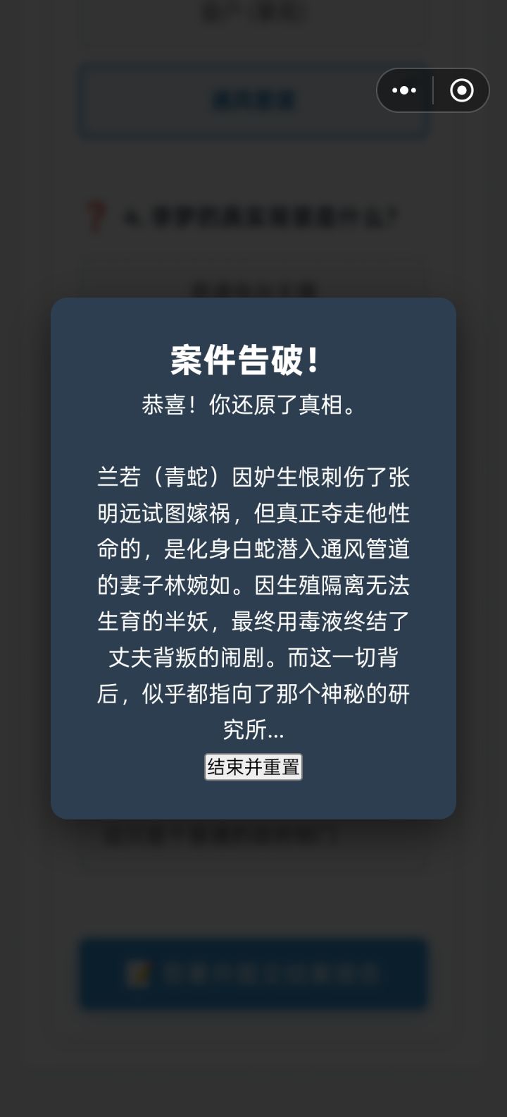 为什么第一章案件告破了,最后只能结束并重置,没有纯退出的选项吗?很想作者出个结案案件归档功能,把解决过的案件结案归档了……不然每次进来看都感觉自己像是没做完,每次进去都可以重新推理一遍,就很离谱……