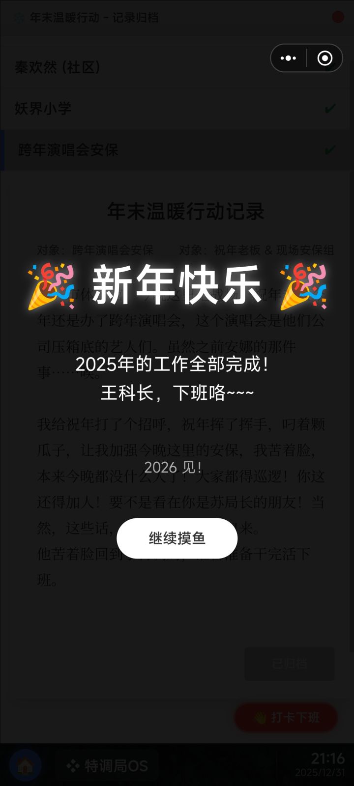 其实也没那么适合毕竟上班不想动脑子(乐)好玩非常好玩引入非自然力量这种的虽然有点给推理下绊子(我有时候还是从科学层面去思考没想到是玄学),但是很新奇很有趣,人物形象立得住,画风很简单但是交互做的很不错(朋友圈甚至能自由回复)有些地方还是没弄懂不知道是不是伏笔偷偷埋刀子期待后面的内容就此纪念#发现好游戏 #今天摸鱼玩点啥