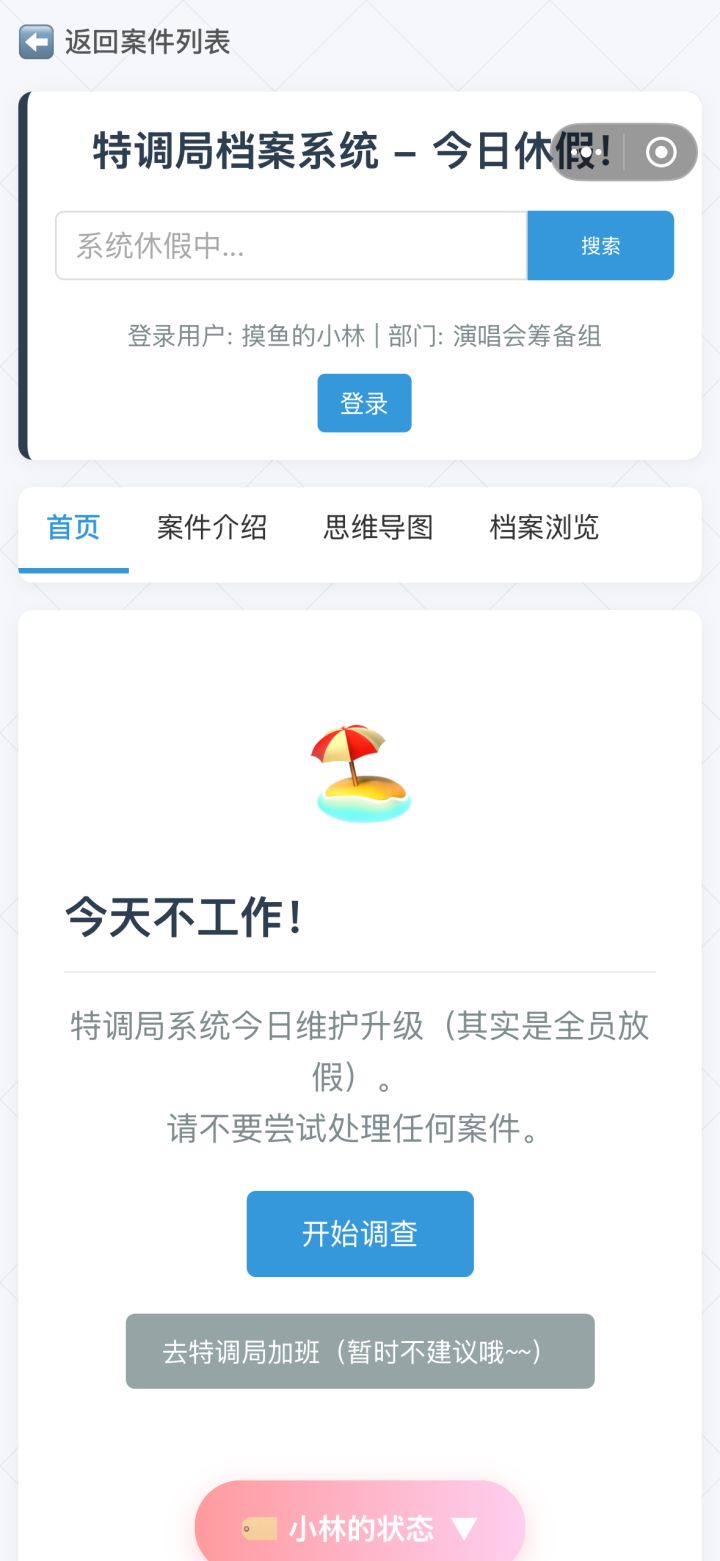 更新了案件4。部分屏幕大小可能不适配。本案件共有14个线索。本案件设计一部分同性恋情描写,介意的话请不要点开第二个结局故事查看。