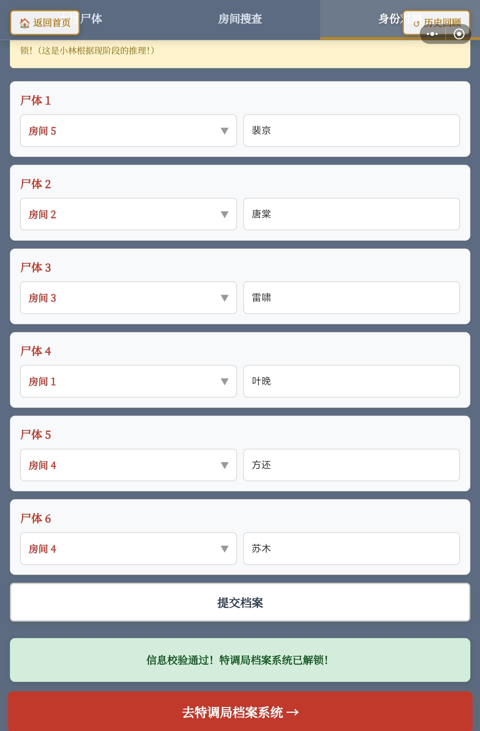 点击即玩。案件5建议拿笔记一下!信息有些多。可能有些小bug,可反馈,我慢慢修。原案件做了修成,案件结束后不会直接重置。