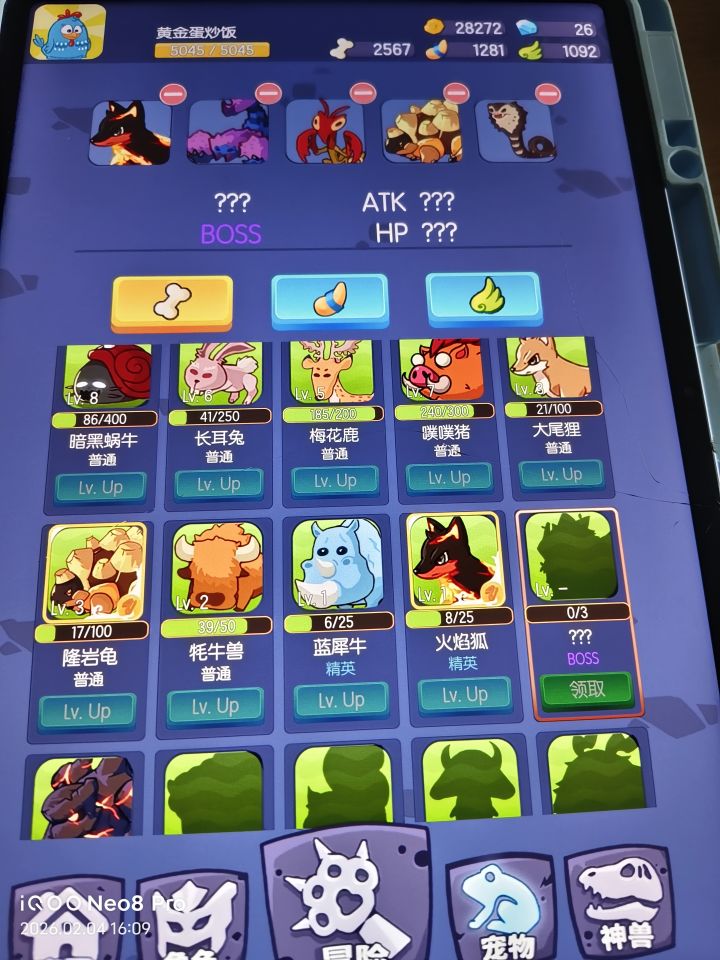 再来说说boss第一关的boss堆螳螂过,第二关的boss堆蜥蜴过,第三关的boss堆龙过 第三关实力不行的话,比较吃运气,把角色的武器衣服升升级,动物的实力就上去了