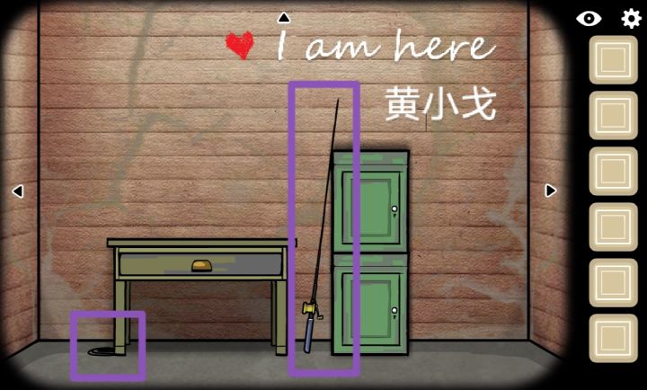 1.先四处观察一下,房子在湖面上、还有钓鱼支架,这好像是一间湖上的小木屋,接下来我们寻找线索吧。桌子旁获得鱼线和鱼竿 1.12.抽屉里获得小刀 2.13.点击房间上方的黑色三角箭头,获得天花板上的虫子,从劣迹斑斑的墙上我们可以大致猜出这间小屋已经荒废很久了 3.1.24.点击左边箭头,窗户左上角获得纸片,上面写着“过去不会消亡。甚至依旧存在”还有五角星形状的图形,让人感觉像个阵法,不管先
