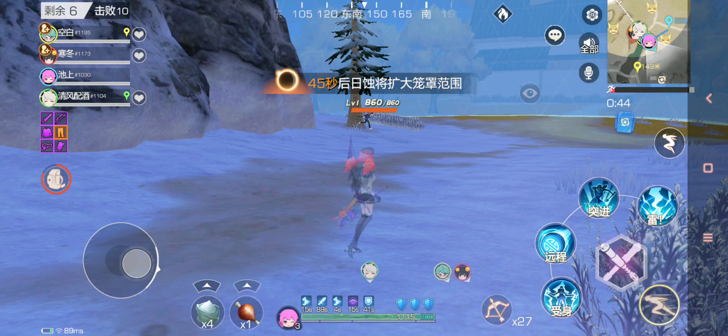 手速快的同学注意了,用1技能的同时点2技能后撤,1技能的雪暴发射会消失。