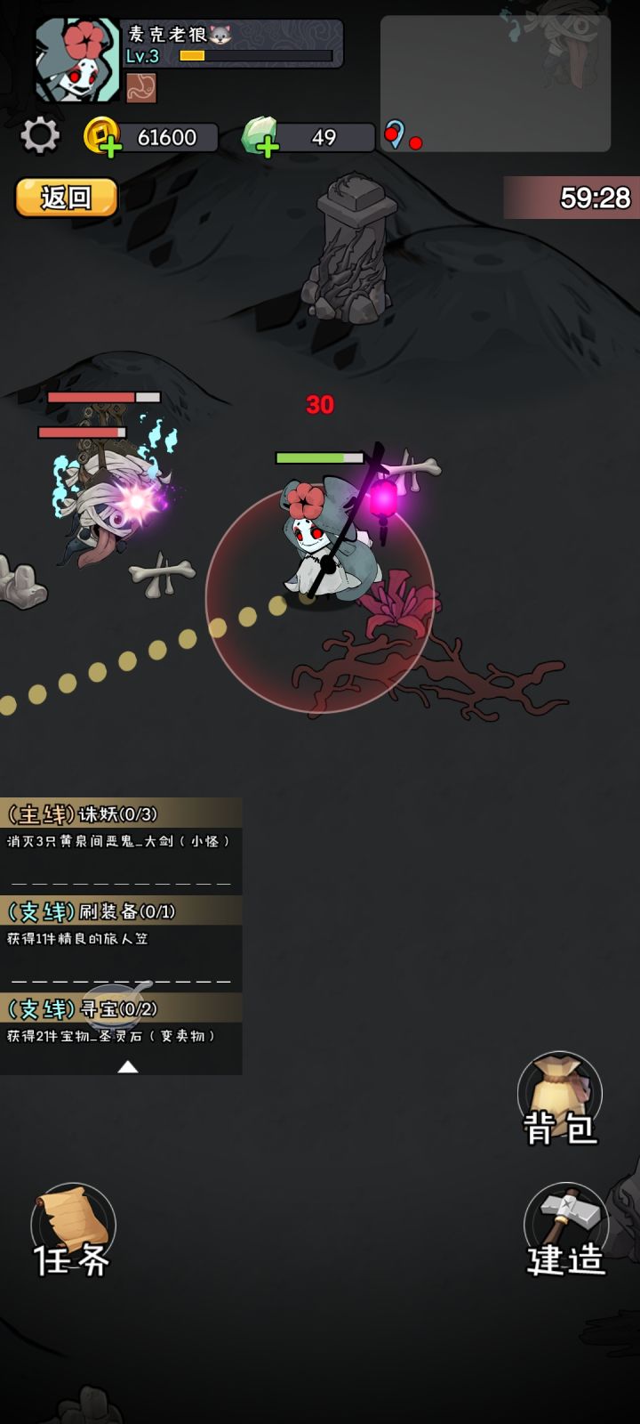 平面动作冒险游戏,有可控的主角,创角可选近战或法师。单手指控制摇杆移动,敌人进入范围后自动攻击,支持移动施法,有一定可操作性。没做新手引导,由主线任务进行一定程度引导,摸索下也能上手。