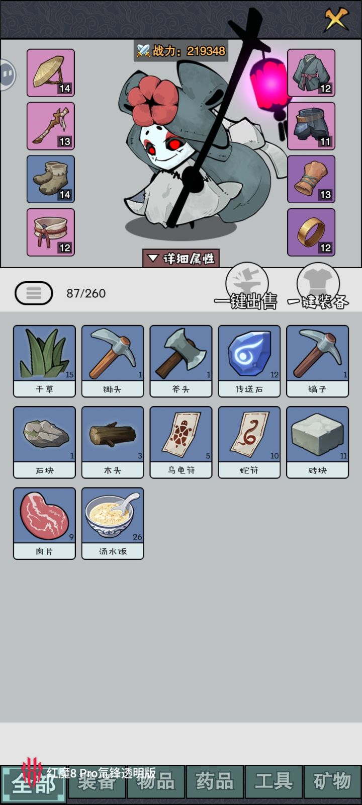 角色通过战斗获取经验值升级,设定很常规,甚至有些像轻度游戏,实际上比较肝。装备槽位八个,支持一键穿装,可以对装备进行强化。装备本身有品级设定,高品级由高级资源打造而成,促进对资源的收集。