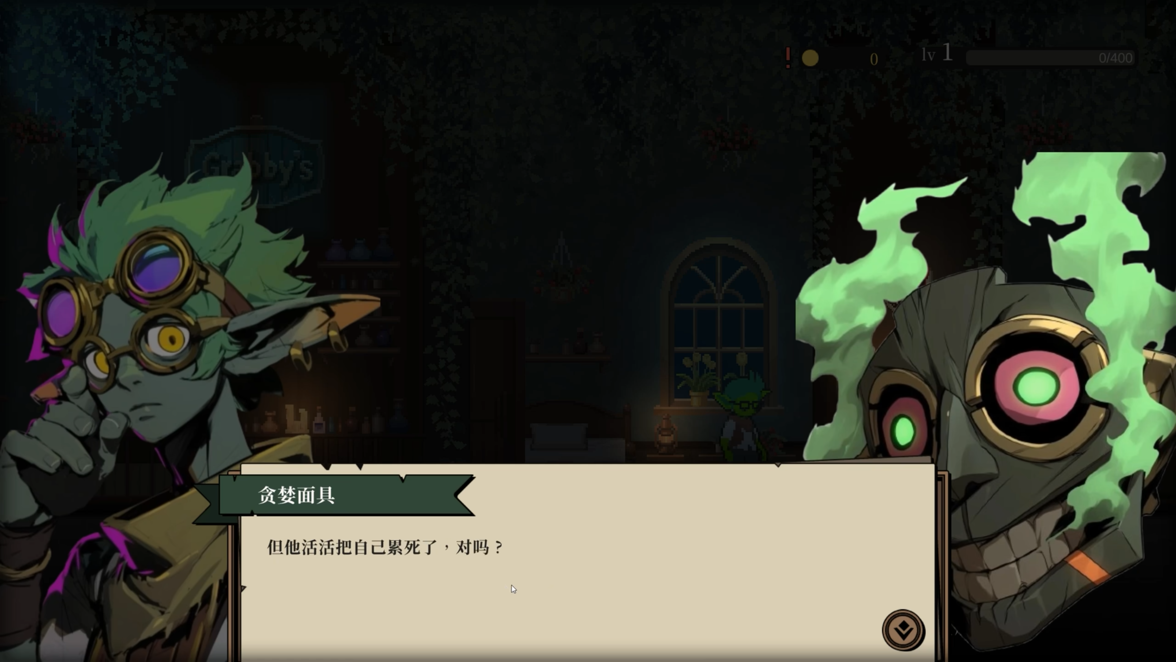 游戏一开始就继承了父亲的老店,当然还有父亲的债务,如果不能按时还钱,就会把老爹的店收走,所以债主会每隔4天就来收一次帐,最关键的是,老爹空留了一个店,也没有什么货物了,连最基本的启动资金都没有了。就在这个时候祖传的贪婪面具传来极具蛊惑的声音,但面对现实,最终将贪婪面具戴上,获得力量,进入地下城探险,啊不对,是进货,