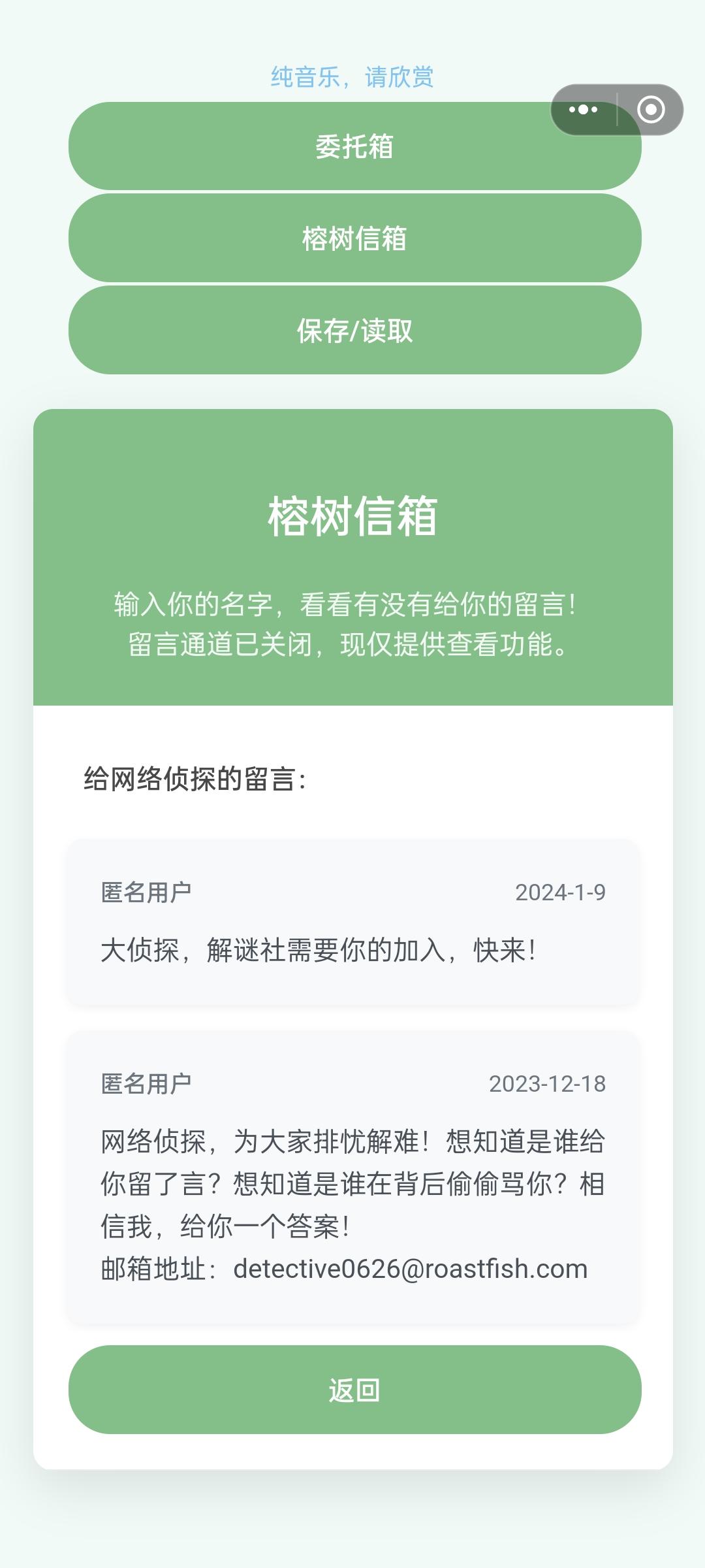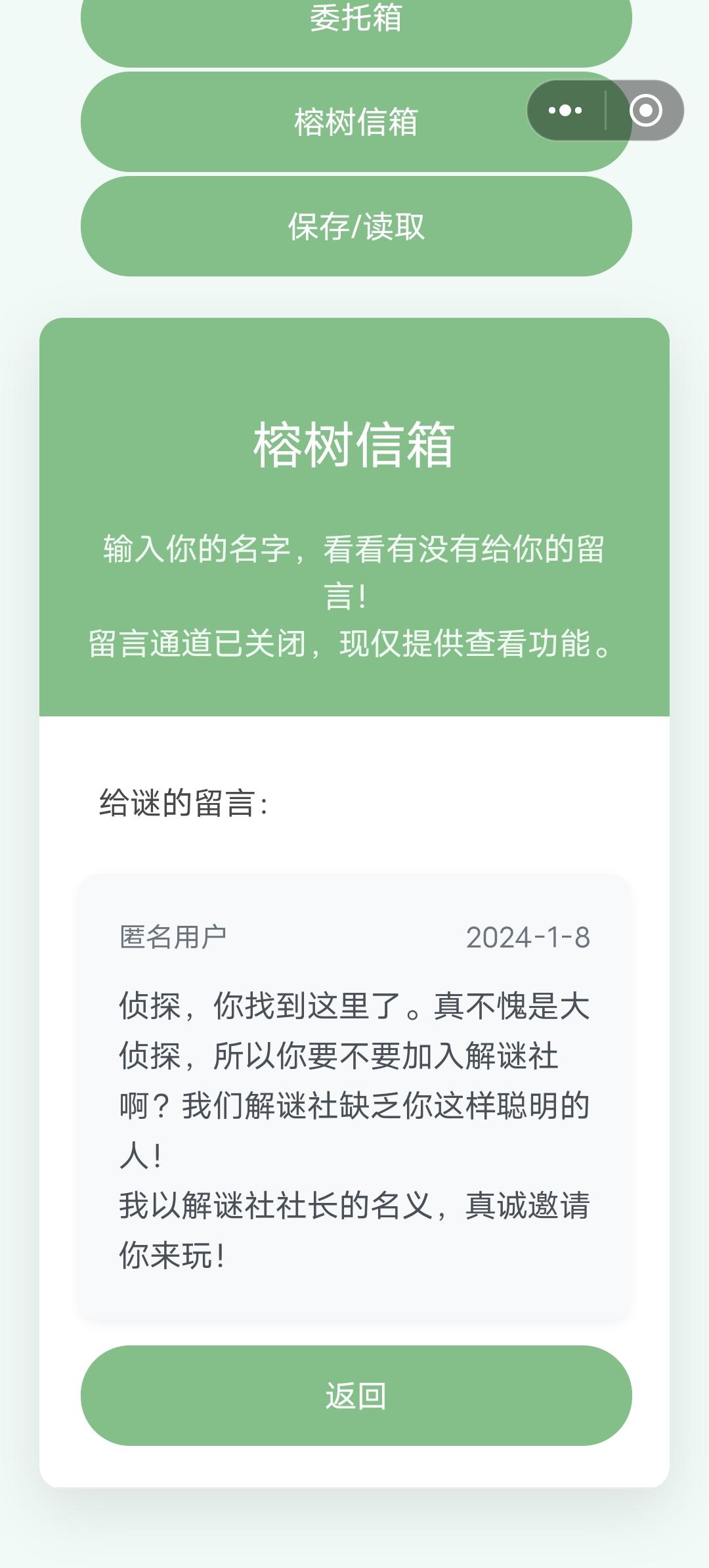 历史记录能看到自己搜过什么,这样子不用总翻来覆去查看人名了(人名好多orz,而且很多人有关联)。一直把“解密社”打成“解密社”,我都把谜题全解完了但是还是不对,然后论坛一看,我打错字了orz要是有历史记录,也能帮忙提醒一下错字问题。